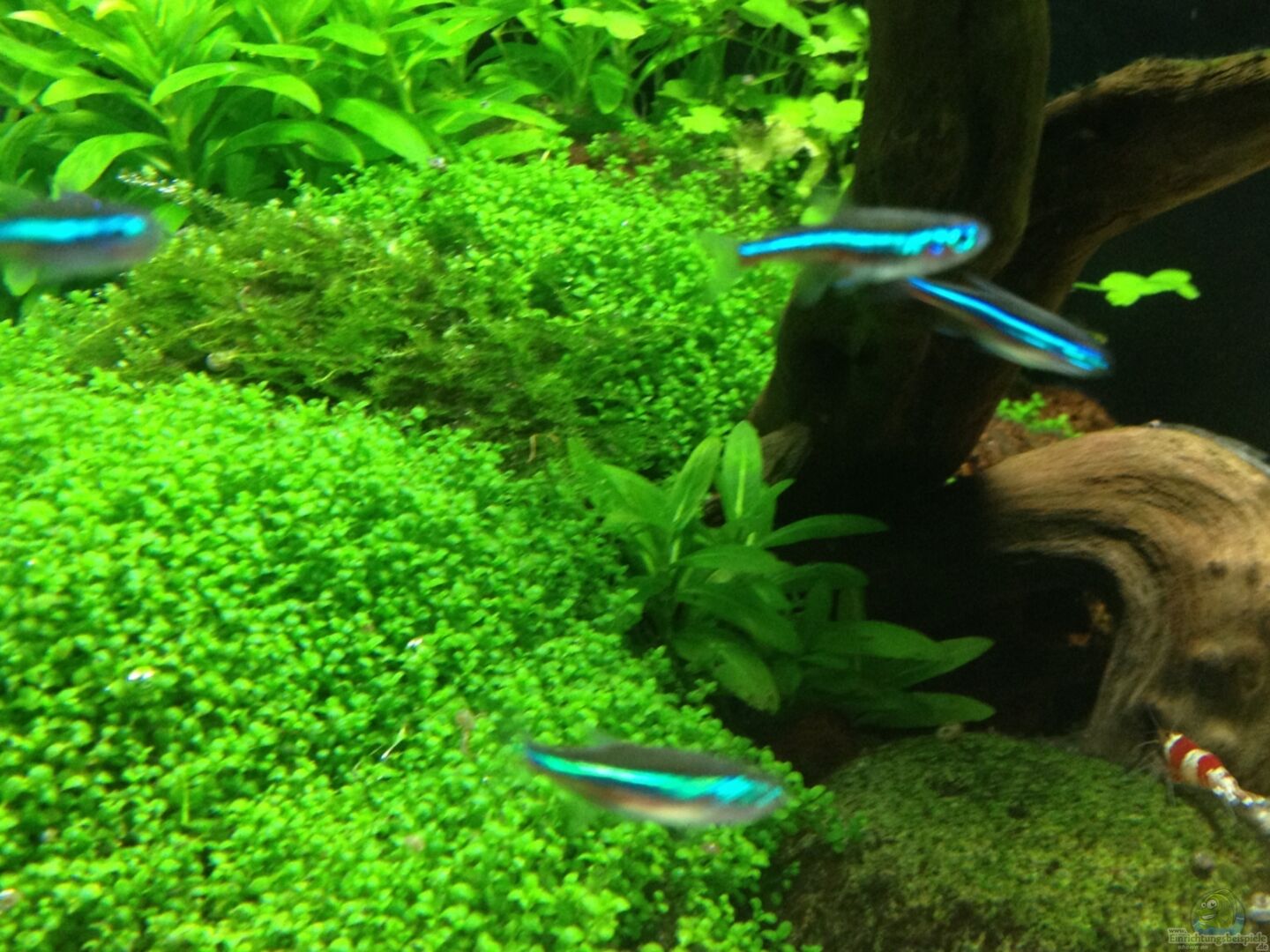 7 blaue Neons 6 Moskitobärblinge 3 Otocinclus Ein paar junge Bees aus meinem gro??en Becken Ich wei??, Mindestgrö??e für Fischaquarien 54 l, aber da ich nur 4l drunter bin, der Aufbau genug Schwimmraum hat und es nun wirklich sehr kleine Fische sind, dene ich, dass es ok ist!?