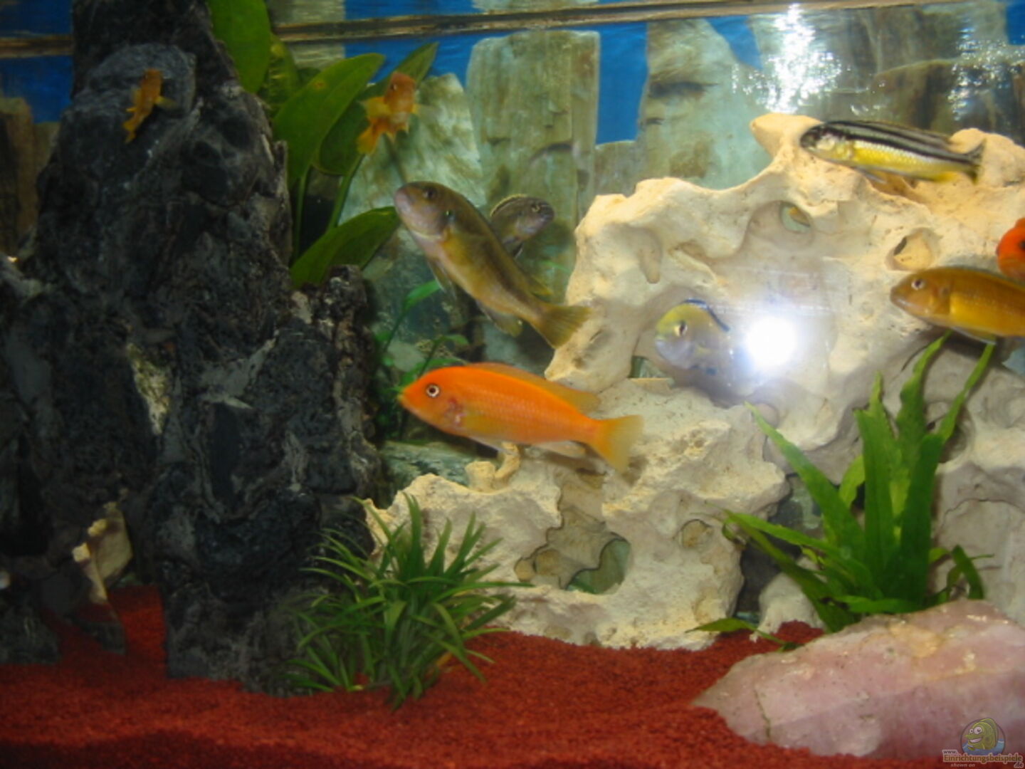 1M/3W Labidchromis Yellow 1M/2W Melanochromis Aratus Türkisgoldbarsch 2 Antennenwelse 1 Engelwel Ich habe Fische von meinem nachbarn bekomen nur weiss ich garnicht was es für welche sind und ob sie zu meinen passen er wollte sie ins klo werfen da habe ich sie genommen die einen sind Orange und die anderen sind gelb so ein dreckiges gelb vieleicht kann mir da einer weiter helfen danke schon mal. Vertragen tun sie sich sehr gut.