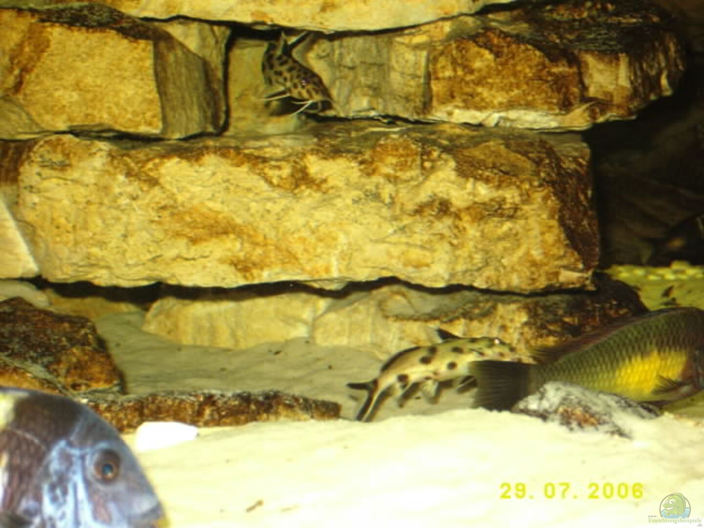 Tropheus moori kasanga ´Red Rainbow´ Verhältnis 4/23 tropheus duboisi ´maswa´ Verhältnis 2/11 Synodontis polli 6 Tiere (noch sehr jung ) (z.Z. schwimmen noch kleine ´kirschmooris´ mit im Becken, diese bekommen aber nächste woche ein eigenes Aquarium)