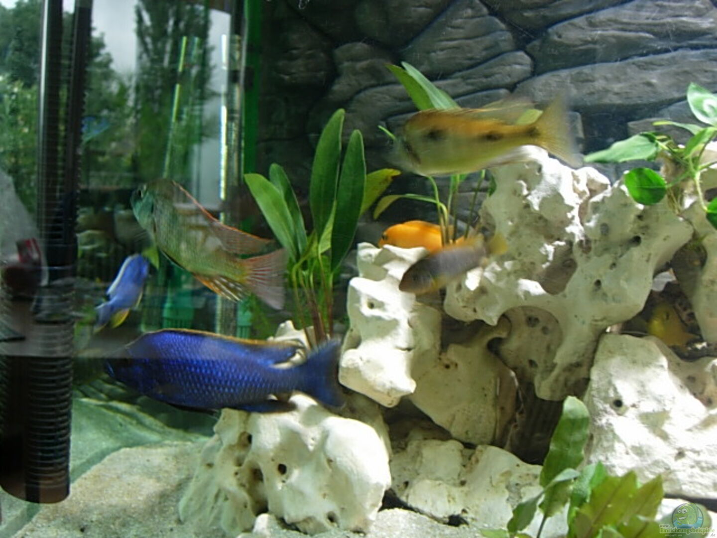 Jeweils 2 Männchen und 3 Weibchen und diverse Jungfische: Labidochromis hongi, Labidochromis caeruleus (Yellow), Pseudotropheus flavus, Pseudotrophes zebra ´red´, Melanochromis sp, 2xM 2x W. Sciaenochromis ahli, 1xM Otopharynx lithobates, 1xM 1xW Lethrinops cf. lethrinus 2x Pterygoplichthys gibbiceps 6x Botia Macracanthus