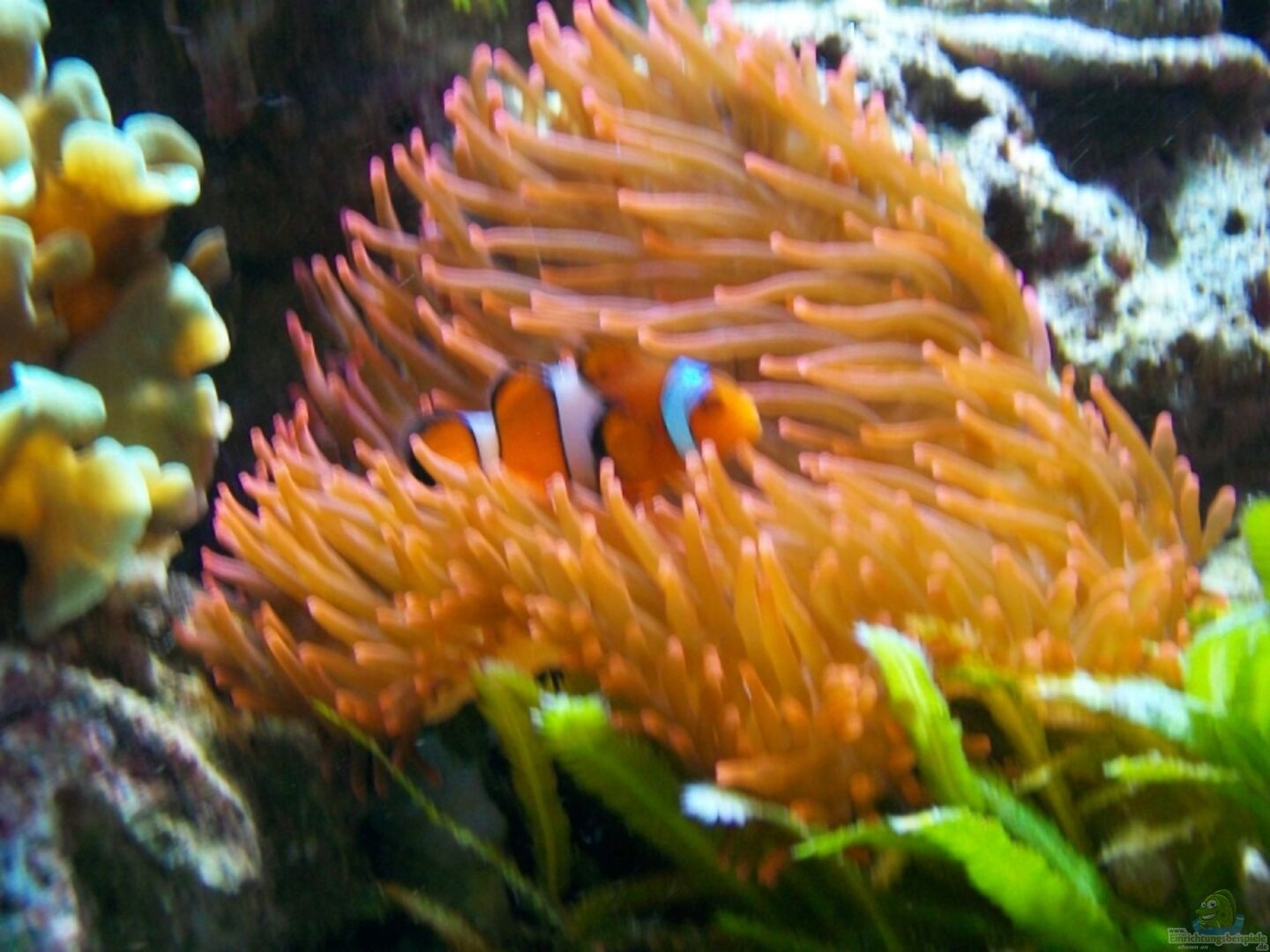 2x Valenciennea strigata - Goldstirn-Schläfergrundel 4x Chrysiptera parasema - Gelbschwanzdemoiselle 5x Chromis atripectoralis - Schwarzachsel-Schwalbenschwänzchen 2x falsche Clownfische 1x Acreichthys tomentosus - Seegras- oder Tangfeilenfisch 1x Diadema setosum - Diadem Seeigel 1x Echinometra mathaei - Riffdach Bohrseeigel ca. 30 Einsiedler ca 15 Schnecken Anemonia cf. manjano - Feueranemone Entacmaea quadricolor - Blasenanemone Clavularia viridis - Grüne Röhrenkoralle Discosoma [...]