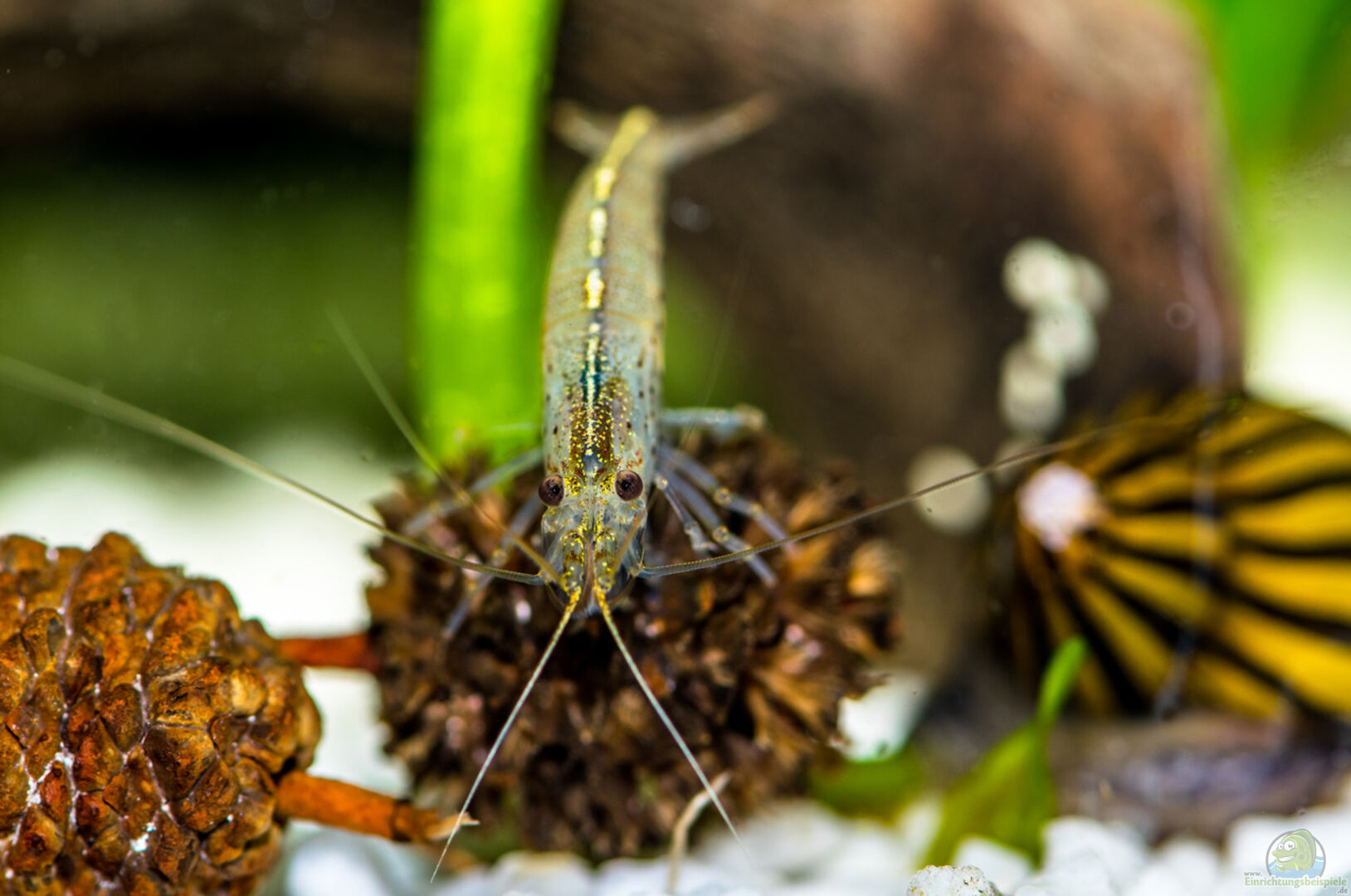 Hier findest du alle wichtigen Infos und Beispiele für die Einrichtung eines Aquariums für Neolamprologus cylindricus (Gestreifter Tanganjikabuntbarsch).