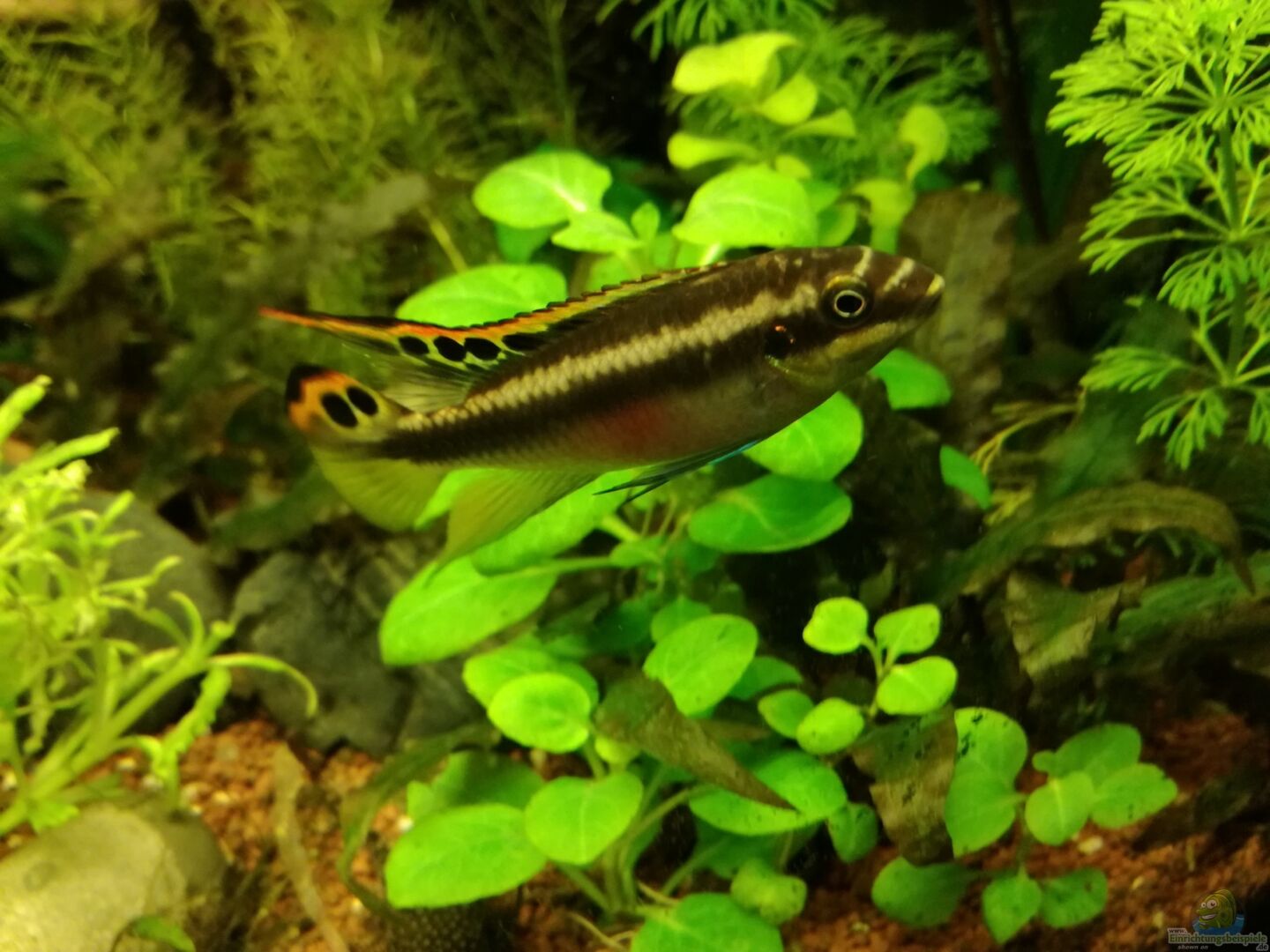 Hier findest du Infos zur Haltung und Beispiele für die Einrichtung deines Aquariums für Apistogramma eremnopyge (Erdbeer-Zwergbuntbarsch).