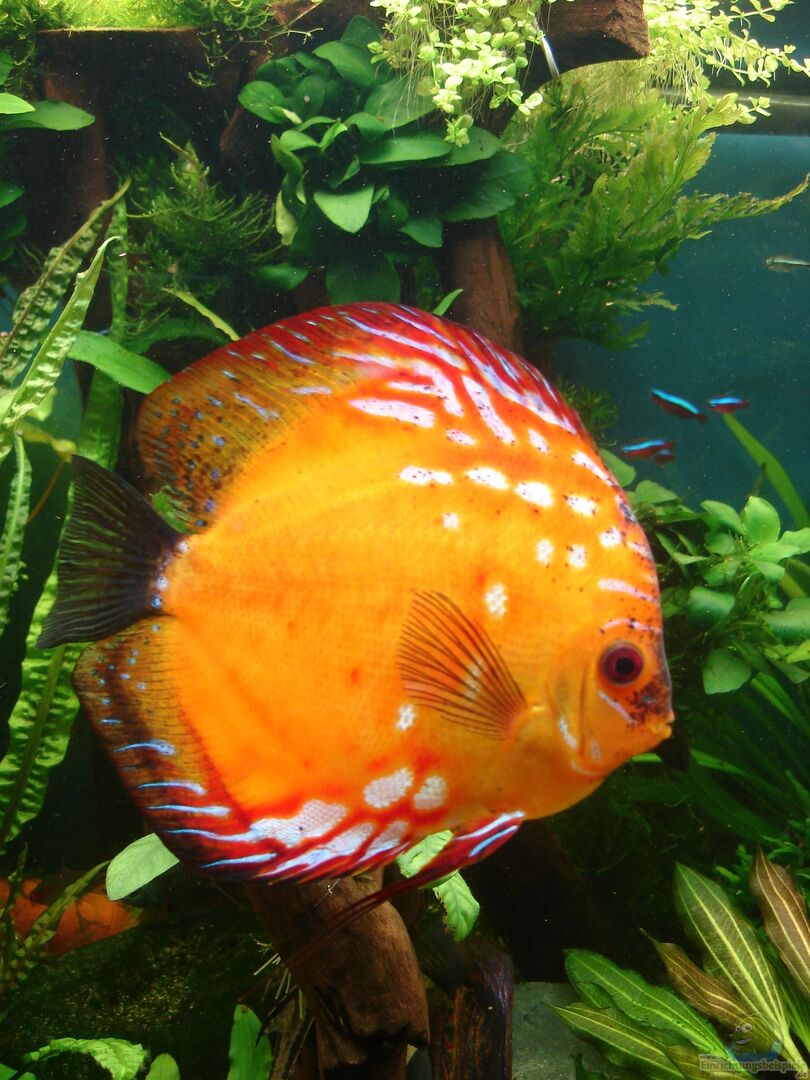 wechselnd Diskusfische, leider war das Mobbing sehr gro??, sodass zu Schluss nur noch 1 Paar übrig blieb, dann nur noch das Weibchen. Dann habe ich umgestellt auf Skalare u.a. Diverse Beifische, wie Neons, Corydoras, 3 Sturisome und Rotkopfsalmler