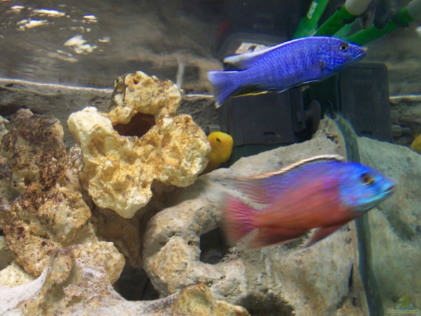 1, 2 Labidochromis caeruleus yellow 1, 3 Copadichromis borleyi kadango 1, 2 Sciaenochromis fryeri 1, 2 Protomelas taeniolatus boadzulu 1, 2 Cyrtocara moorii 1, 2 Otopharynx tetrastigma 2 Synodontis njassae einige Turmdeckelschnecken