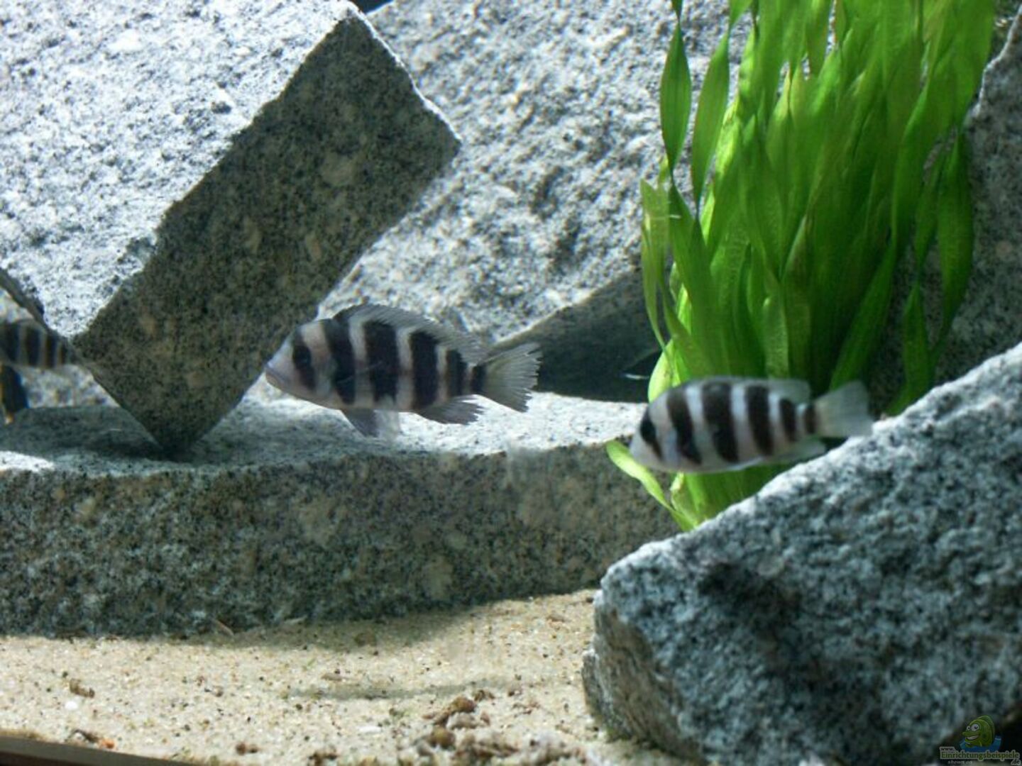 11 Cyphotilapia Frontosa ´Mpimbwe´ Jungtiere sind jetzt ca. 10-14 cm. M/W ist noch nicht feststellbar, aber es sind 2 Tiere die schon eine ´Denkerstirn´ ausprägen. 6 Altolamprologus Compressiceps ´Malagarasi´. Vermutlich 3/3.