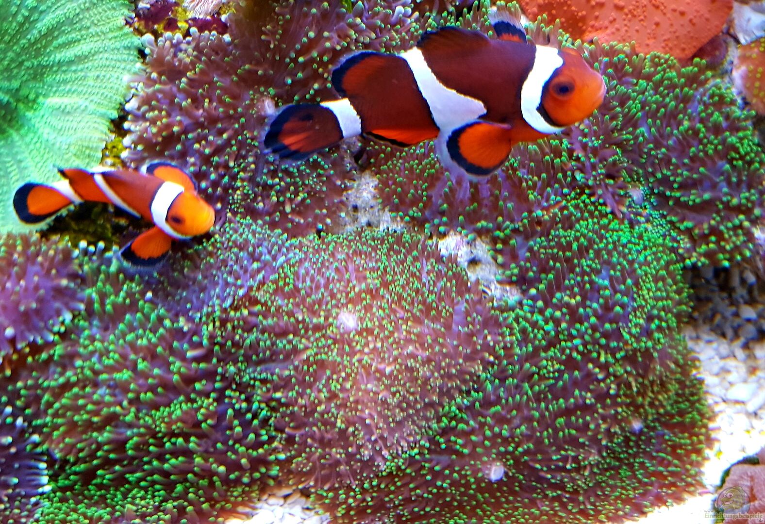 2 Clowns, 1 Riffbarsch Pseudochromis Paccagnellae, 2 Garnelen = 1Weisband Putzergarnele und eine Wundermanni, Schnecken und Einsiedler.