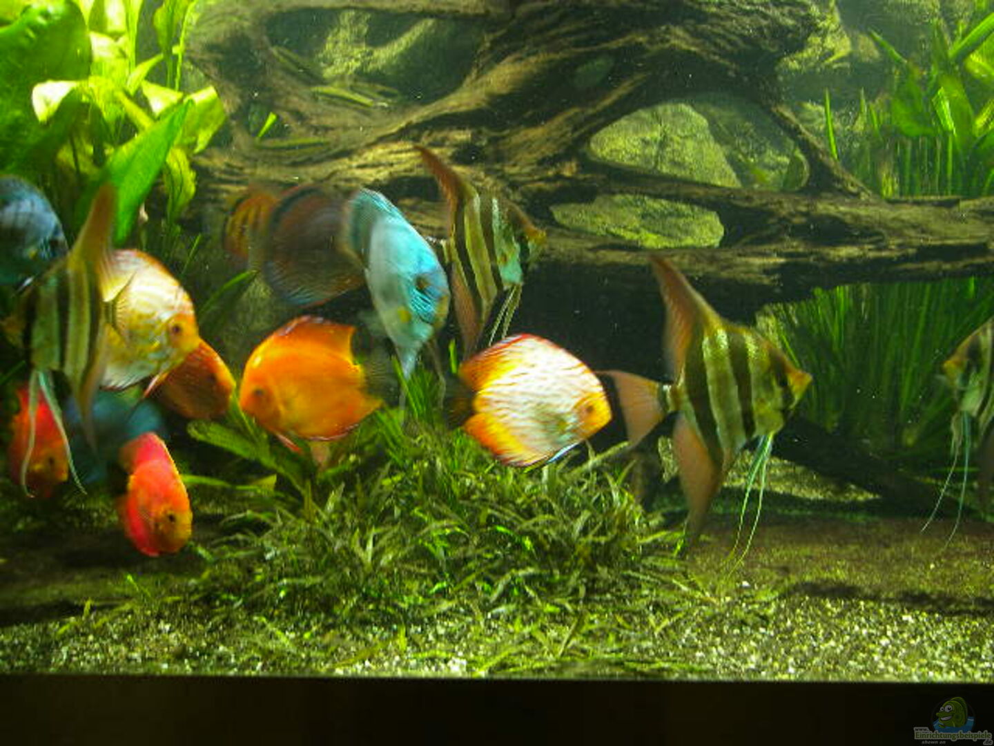 div. Diskuszuchtformen in verschiedenen Grö??en ca. 25 Stck. / 6 Altumskalare-Wildfang klein gekauft mittlerweile ca 28 cm hoch / ca. 60 Siamensis / ca. 80 Leopardpanzerwelse / ca. 20 Ringelhandgarnelen ( Keine Schnecken und Gesundheitspolizei )die sich momentan ständig vermehren, und noch ein paar rote Neon. Entgegen anderer Behauptungen da?? man Diskus und Altum nicht zusammen halten kann, kann ich nur sagen : keinerlei Krankheiten, keinerlei Stre??, keinerlei Probleme beim Fressen ( Ich [...]