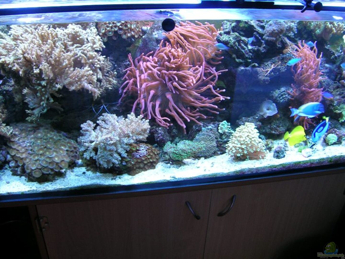 1.1 Amphiprion frenatus 1 Acanthurus leucosternon 1 Paracanthurus hepatus 2 Chrysiptera hemicyanea 1 Salarias fasciatus 7Chromis atripectoralis 2 Pholidichthys leucotaenia 1Pseudocheilinus hexataenia 1Zebrasoma flavescens Entacmaea quadricolor versch. Krustenanemone Discosoma Stylophora pistillata Euphyllia paradivisa Litophytum Sinularia sp. gruen Sabellastarte indica Alveopora gigas Strau??koralle 1x Braun 1x Grün Gorgonie Parazoanthus axinellae 3 [...]
