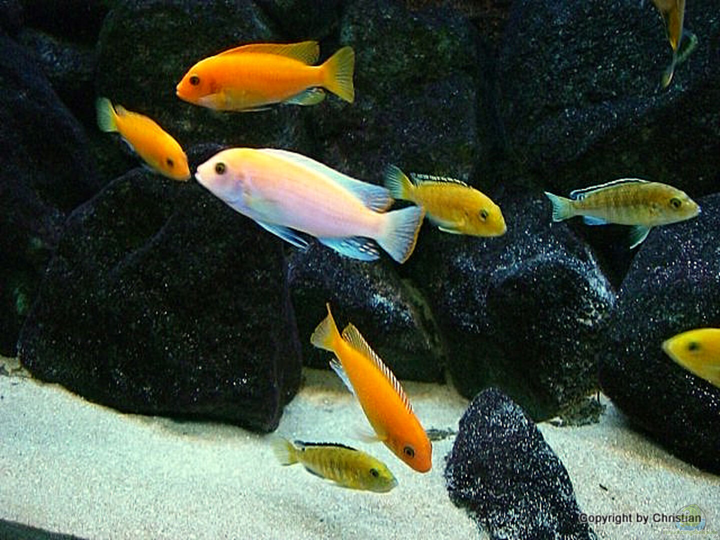 > Labidochromis´Yellow´ [1m/5w] > Labidochromis´Hongi´ [1m/4w] > Metriaclima estherae red/red [6 jungtiere ca. 4cm] > Pseudotropheus´Socolofi´ [1m/3w] > Melanochromis ´Auratus´ [1m/4w] > Synodontis multipunctatus ´Vielpunkt Fiederbartwels´ [1]