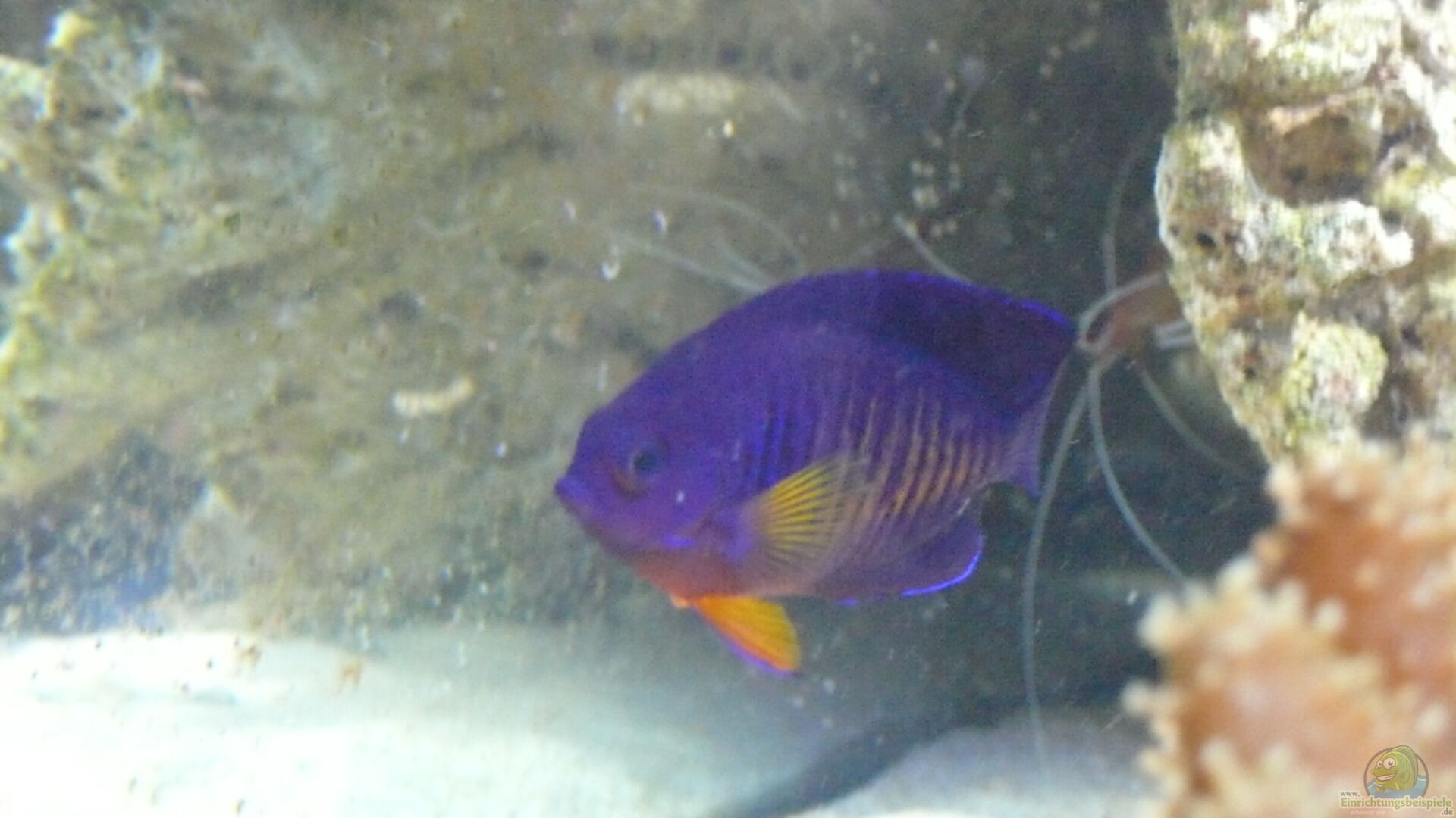 2Arzur Riffbarsch (Chrysiptera hemicyanea) hatte Anfangs 2. 2 Amphiprion ocellaris Falscher Clown - Anemonenfisch 1 Zitronensegelflosser (Zebrasoma Acanthuridae) 1 Banggai Kardinalfische (Pterapogon kauderni) 2 Grundel (Amblygobius stethophthalmus) 2 Zwergkaiserfisch (Centropyge bispinosa) 1 Seeigel (Tripneustes gratilla) 5 Seeigel (M. globulus ) 1 Schlangenseestern (schwarz ) Eine sehr gro??e Pilzlederkoralle unten rechts. Eine Blasenanemone für die Clownies.