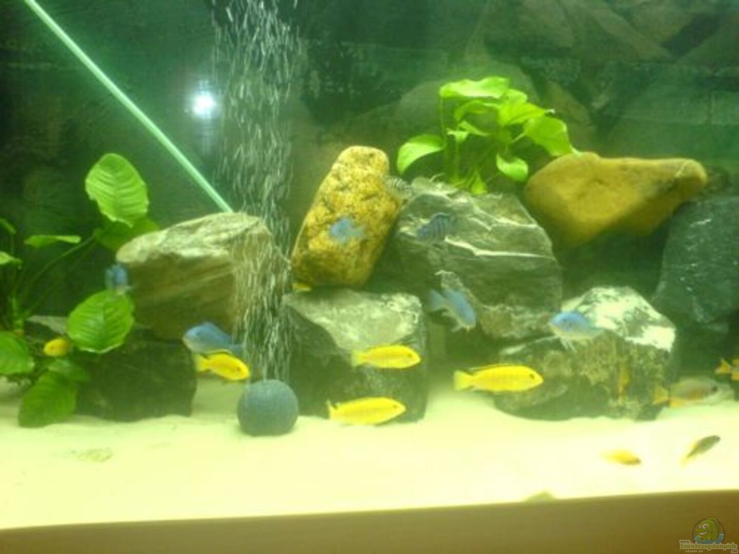1/4 Pseudotropheus socolofi (WF) 1/4 Labidochromis yellow (F1) 1/4 Labidochromis perlmutt (F2) 1/3 Pseudotropheus demasoni ---Die auf dem Bild sichtabrn copadichromis borleyi sind ebreits ausgezogen, w erde demnächst aktuelle Bilder machen -----ich wei?? dass die Pseudotropheus demasoni als recht ruppig gehalten werden, jedoch ist das bei mir völlig anders. Ich habe die Fische slebst gro??gezogen und sie sind bisher noch völlig gfrei von Aggressionen.
