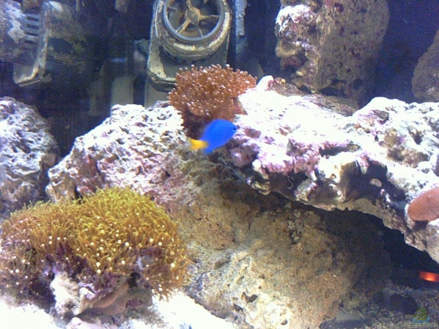 2 x Chrysiptera parasema Clavularia viridis Xenia Scheibenanemonen Krustenanemonen 2 x Einsiedler Grüne Mini-Blasenanemone Lysmata debelius unzählige Schnecken, Seesterne und Kleinstlebewesen.