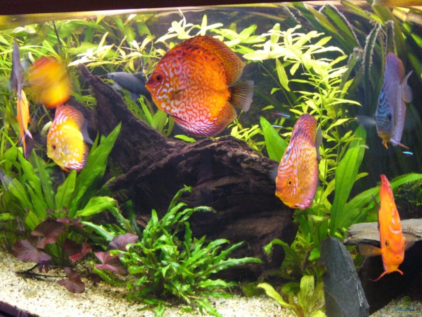 11 Diskus (1 Rot-Türkis, 2 Malboro Red, 1 Red/White, 7 Pigeon Blood Rot) ca. 30 Neon 1 Feuerschwanz 1 Antenenpanzerwels Wels L154 (ca. 30cm) 2 gro??e Nadelharnischwelse 5 Panzerwelse 1 gro??e Langarmgarnele und 2 kleinere Garnelen 1 gro??er Australischer Flusskrebs ´Blue Moon´ 1 Black Molly