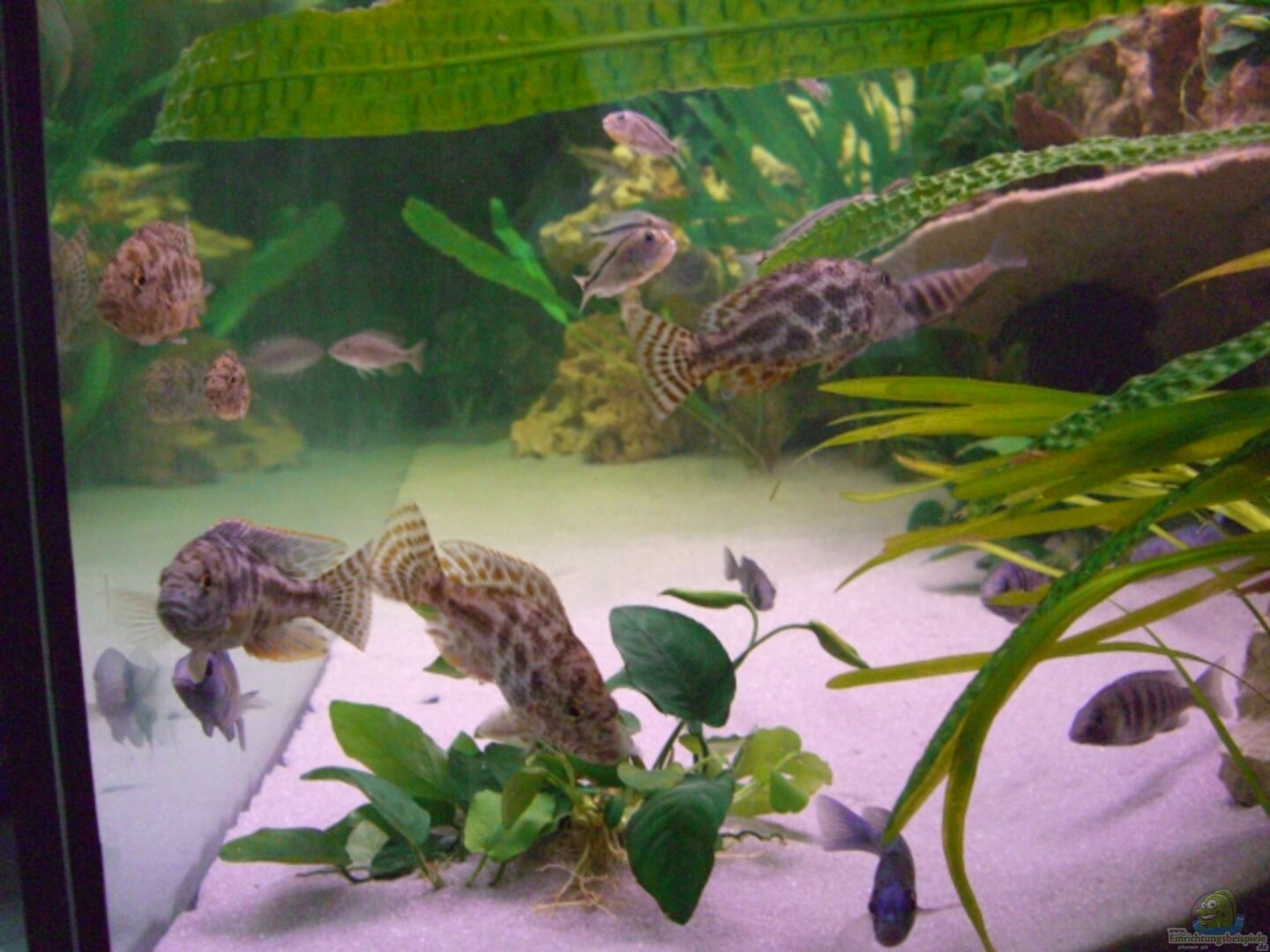Fische: 6x Nimbochromis polystigma (aus eigener Aufzucht) 2/4 3x Dimidiochromis strigatus 1/2 4x Dimidiochromis compressiceps 1/3 4x Aristochromis christyi 1/3 6x Placidochromis phenochilus tanzania 2/4 6x Aulonocara spec. Firefish 2/4 5x Melanochromis cyaneorhabdos sp. Maingano 1/4 6x Sciaenochromis fryeri ???ahli??? 2/4 Welse: 4x Ancistrus 2x Gibbiceps 1x L027 Panaque nigrolineatus, Royal-Pleco (ca. 20cm gro??) Ich wei?? das ich die Welse nicht in diesem Becken [...]