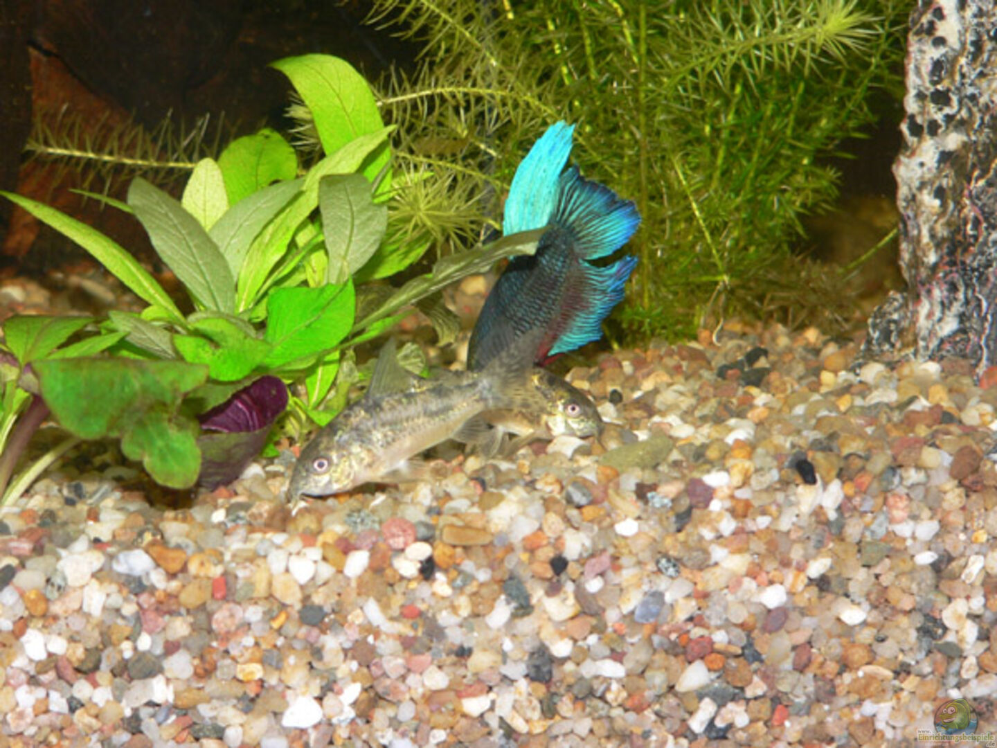 5x Roter von Rio (Hyphessobrycon flammeus) 5x Trauermantelsalmler (Gymnocorymbus ternetzi) 3x Gefleckte Panzerwelse 1x Siamesischer Kampffisch blau (Betta splendens) 3x Amanogarnelen