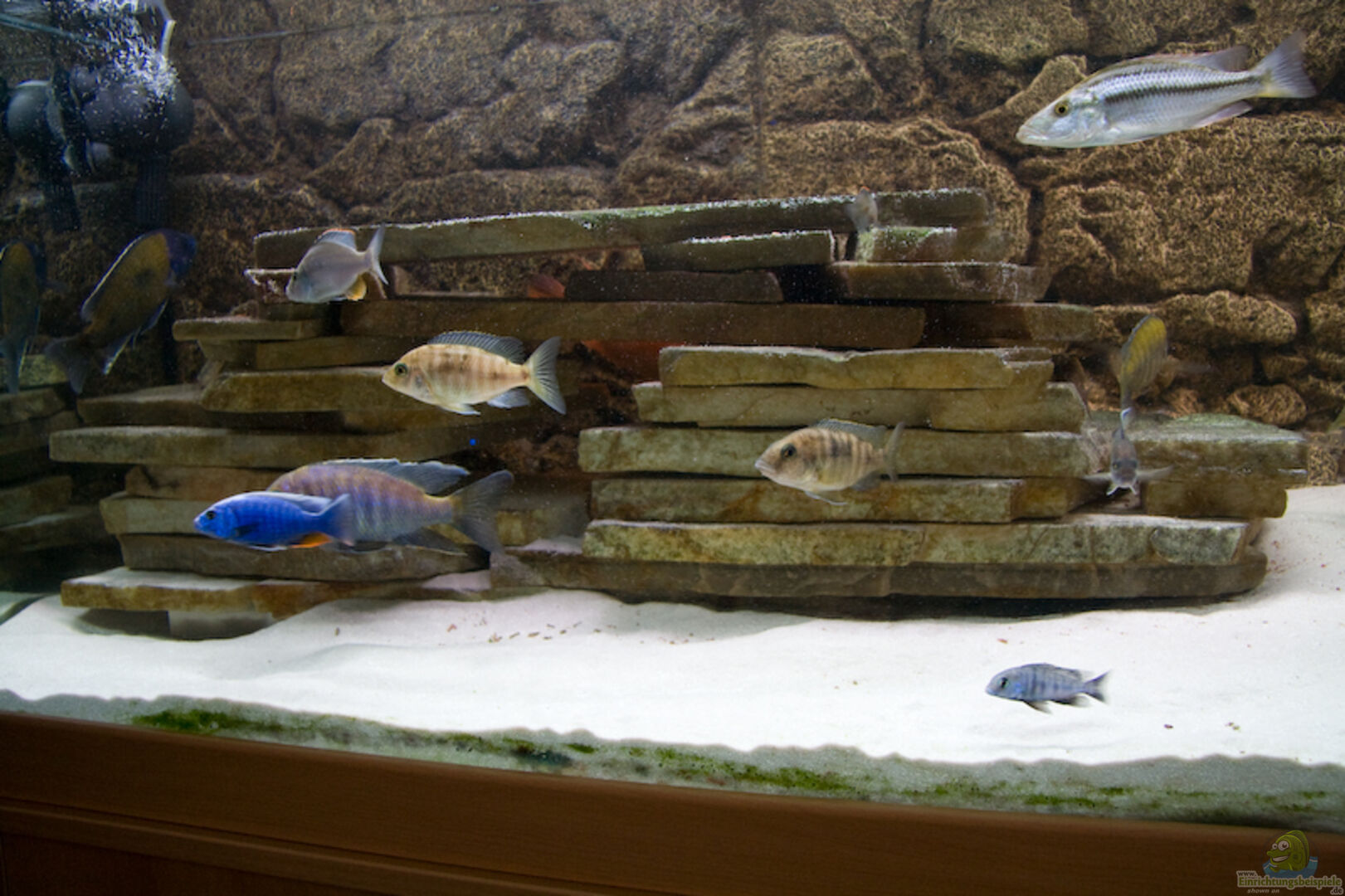 Sciaenochromis fryeri Iceberg 1/3 Auloncara red rubin 1/4 Aulonocara hansbaenschi 2/4 Dimidiochromis compressiceps 1/1 Cyrtocara moorii BOULENGER 2/2 Aulonocara cf. stuartgranti 1/0 Mit den Fischen im Becken züchte ich nicht. Für eine artenreine Zucht wäre die Fischzusammenstellung ungeeignet, da manche Arten zur Hybridisierung neigen!