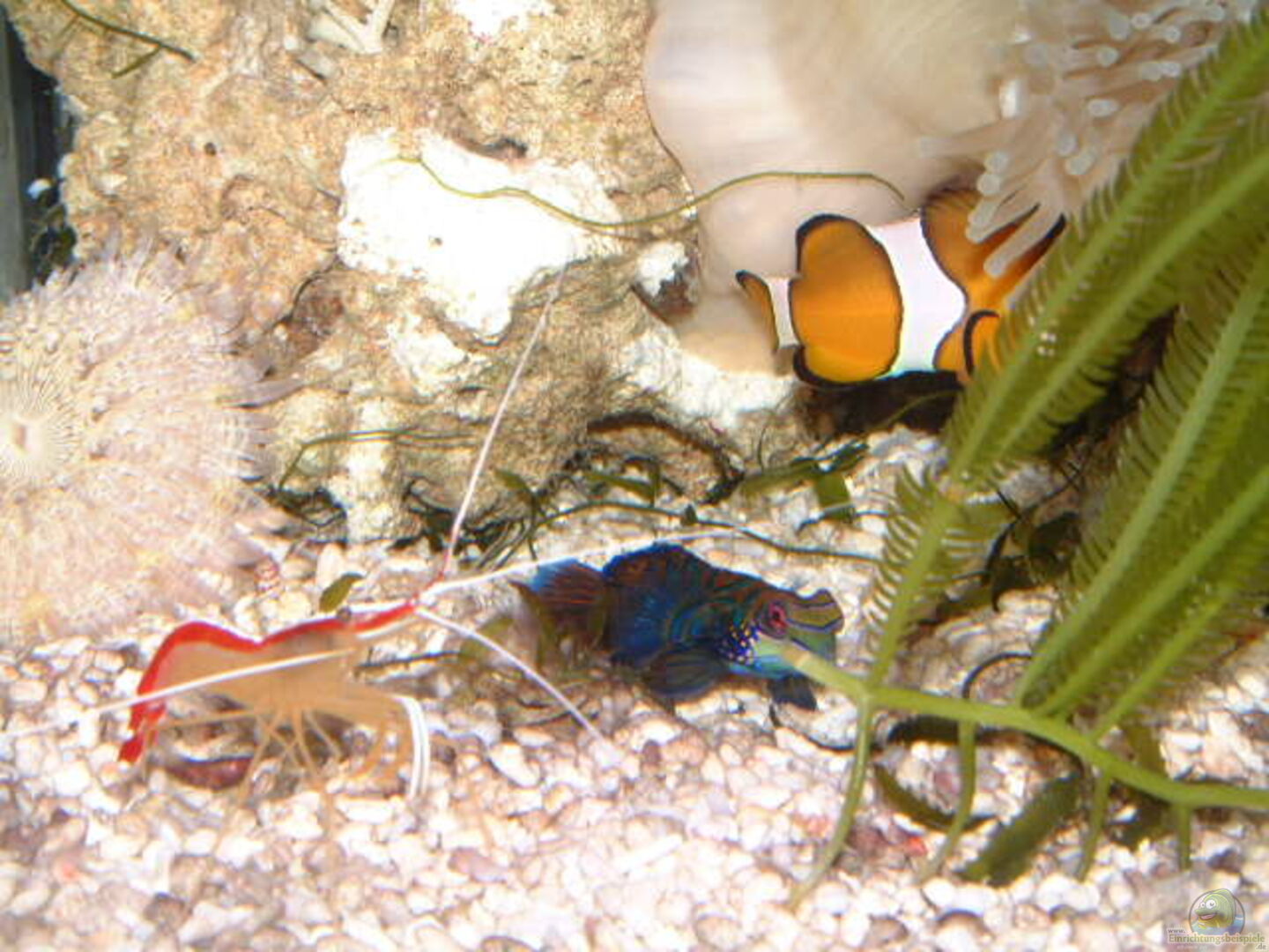Amphiprion ocellaris-----Falscher Clownfisch 1/1 Salarias Fasciatus--Juwelen Felshüpfer Pterosynchiropus splendidus-----Mandarinfisch/Leierfisch 1/1 Capnella imbricata-----Keniabäumchen Lysmata amboinensis----Wei??band Putzergarnele (zwei Stück) Heteractis magnifica-----Prachtanemone eine wei??e Scheibenanemone deren Namen ich nicht kenne Archaster angulatus-----grabender Seestern