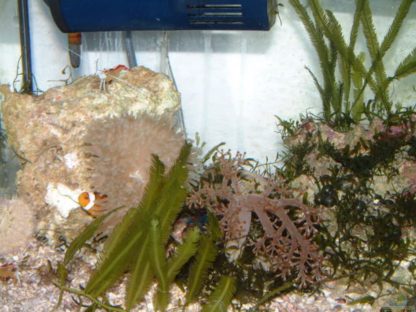 Amphiprion ocellaris-----Falscher Clownfisch 1/1 Salarias Fasciatus--Juwelen Felshüpfer Pterosynchiropus splendidus-----Mandarinfisch/Leierfisch 1/1 Capnella imbricata-----Keniabäumchen Lysmata amboinensis----Wei??band Putzergarnele (zwei Stück) Heteractis magnifica-----Prachtanemone eine wei??e Scheibenanemone deren Namen ich nicht kenne Archaster angulatus-----grabender Seestern
