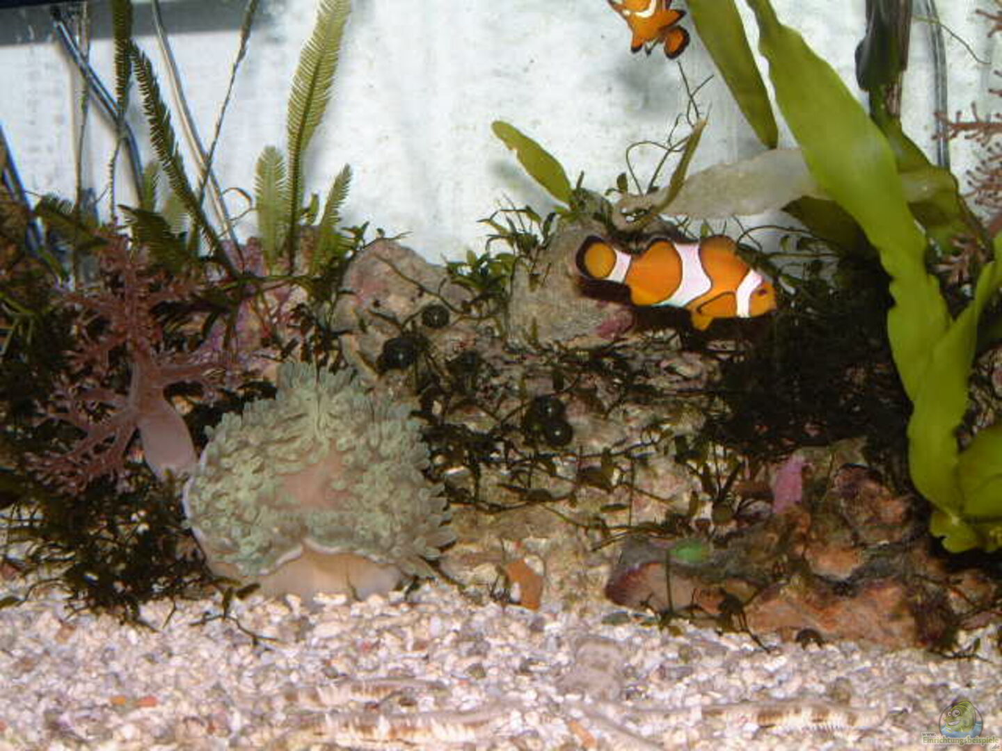 Amphiprion ocellaris-----Falscher Clownfisch 1/1 Salarias Fasciatus--Juwelen Felshüpfer Pterosynchiropus splendidus-----Mandarinfisch/Leierfisch 1/1 Capnella imbricata-----Keniabäumchen Lysmata amboinensis----Wei??band Putzergarnele (zwei Stück) Heteractis magnifica-----Prachtanemone eine wei??e Scheibenanemone deren Namen ich nicht kenne Archaster angulatus-----grabender Seestern
