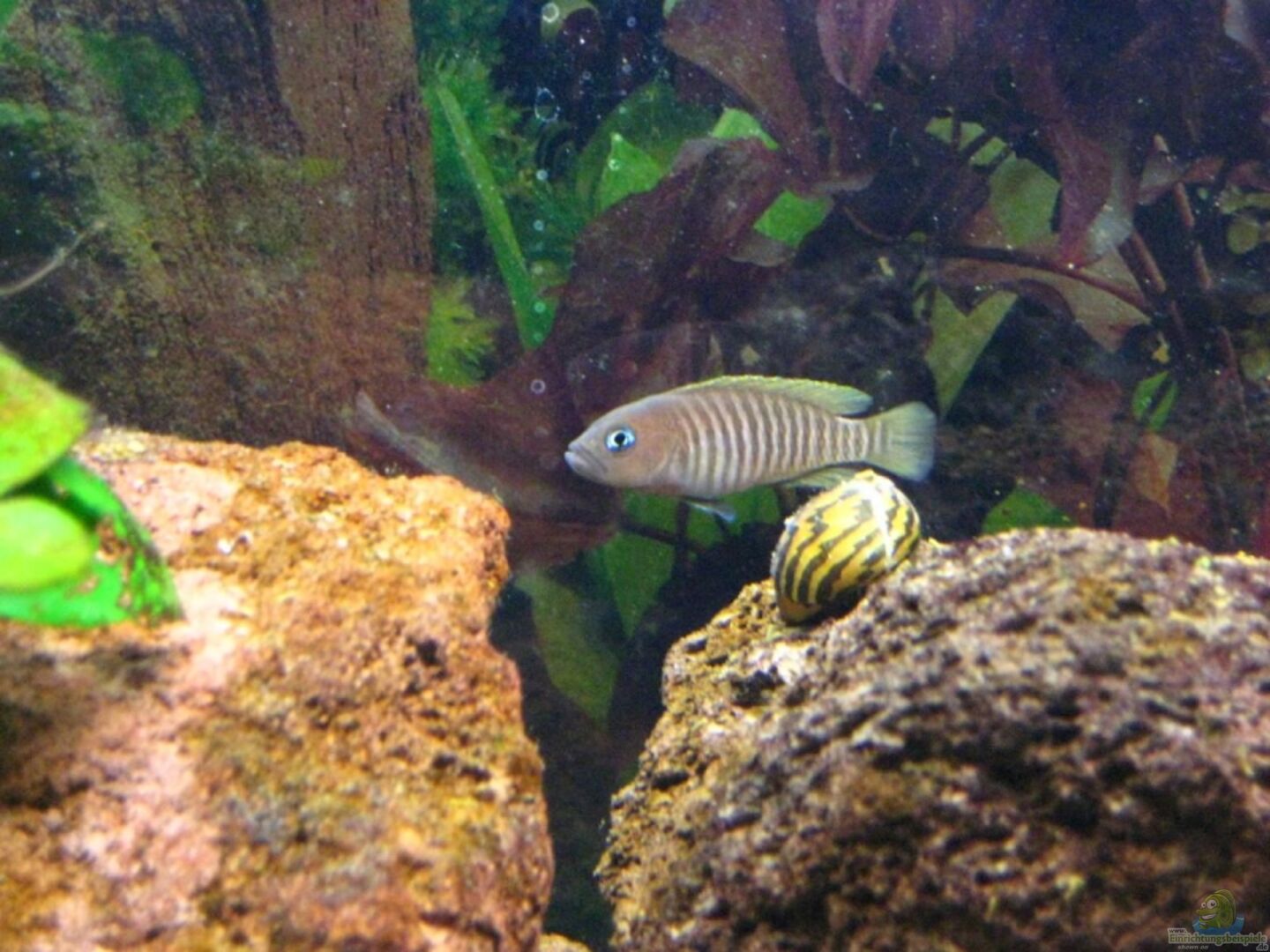 - Neolamprologus multifasciatus ´Vielstreifen-Schneckenbuntbarsch´ 2/2 + Nachwuchs - 3 Neritina natalensis ´Zebrarennschnecke´