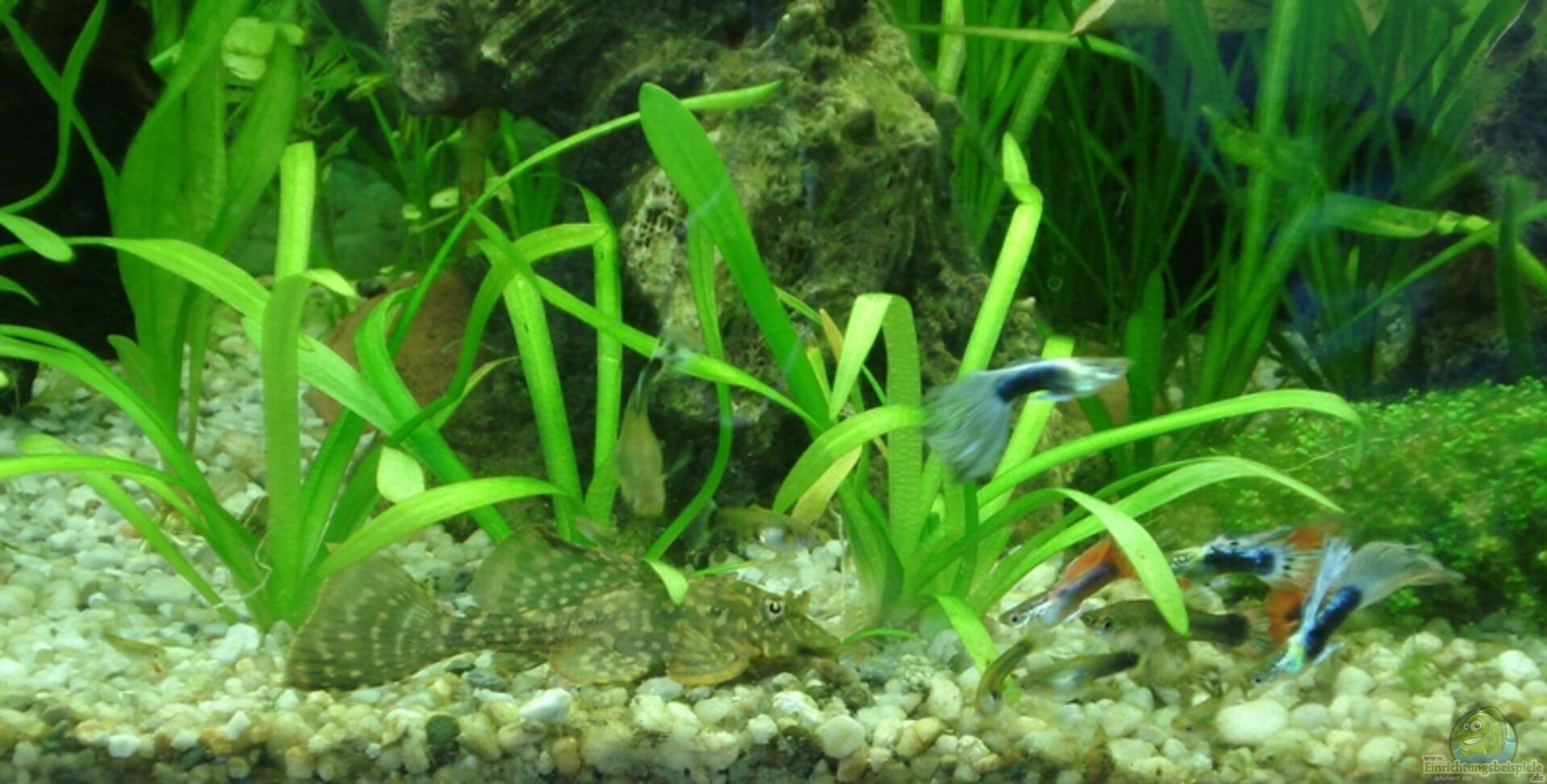 ca. 20x Guppys; 9 Erwachsene und ca. 10-15 Jungtiere 7x Garnelen (Caridina japonica) ~20 - 50 Blasenschnecken 1 Wels