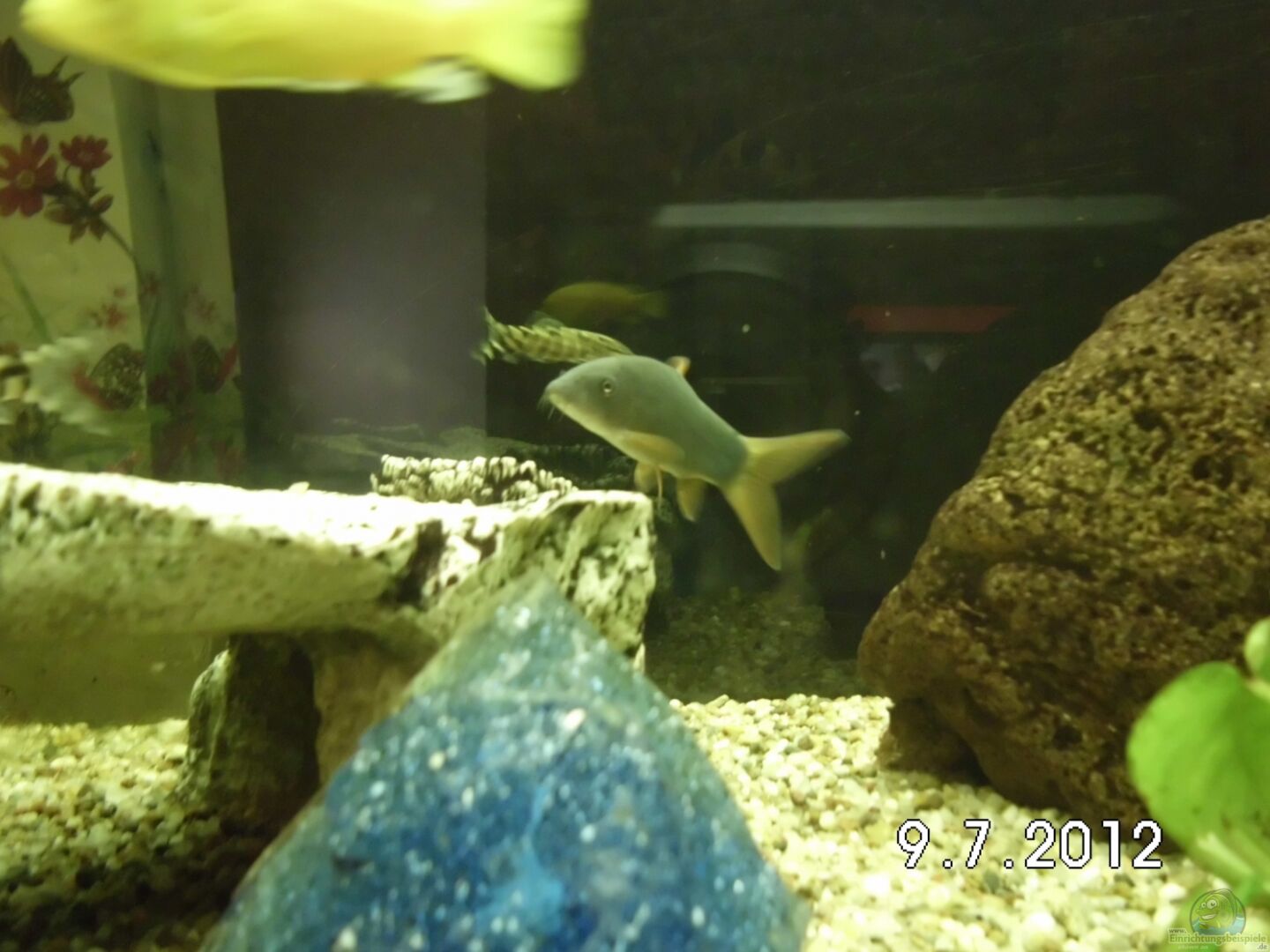 Prachtschmerle (Chromobotia macracanthus) 1 Rotschwanz Schmerle 2 Netzschmerle (Botia lochata) 2 Antennenwelse 1 Goldener Antennenwels 1 Schmuckflossen Fiederbuntwels (Synodontis euptera) 1 Azur-Cichlide (Scaenochromis fryeri "Iceberg") 1/1 Goldener Labidochromis (Loabidochromis caeruleus) 2 Malawi Delphin (Cyrtocara Moorii) 1 Barsch (Art unbekannt) 1