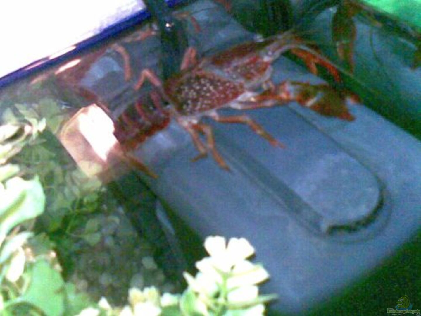 1 Procambarus clarkii (Amerikanischer Roter Sumpfkrebs Männlich) 1 Apfelschnecke Gold (Ampullariidae) 2 Marmorierte Fadenfische (Trichogaster trichopterus)