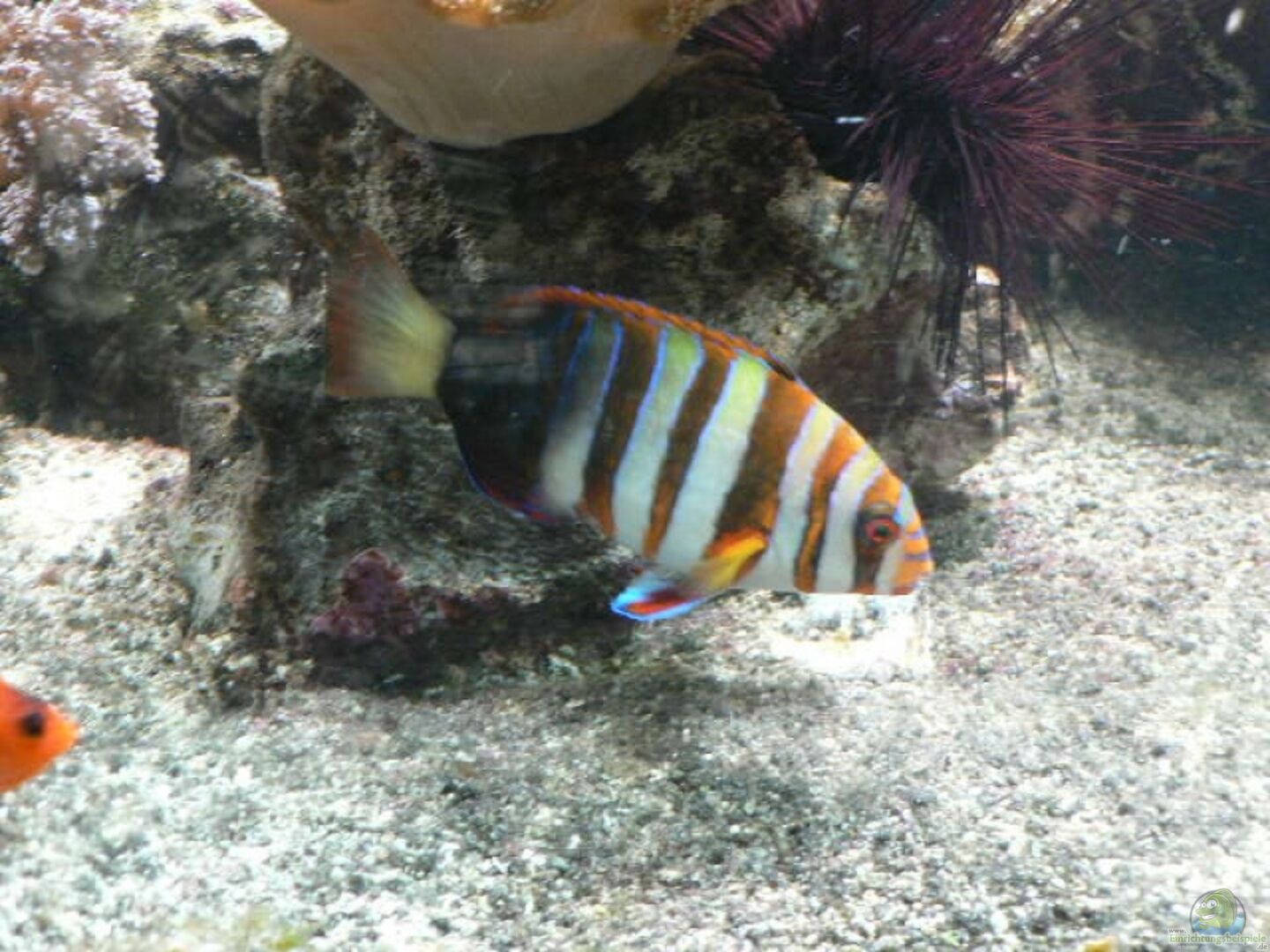 Fuchsgesicht, Flammen zwerkaiser, Harlekin lippfisch, Paletten Doktor, Vogel lippfisch, Mond-Samdkaiser (sind noch nicht alle, ich weis nicht die namen der restlichen Fische, werde mich aber informieren) unzählige seesterne kleine krebse, dann noch so weise Würmer im Filter (vll Kalkwürmer unzählige seesterne kleine krebse, dann noch so weise Würmer im Filter (vll Kalkwürmer