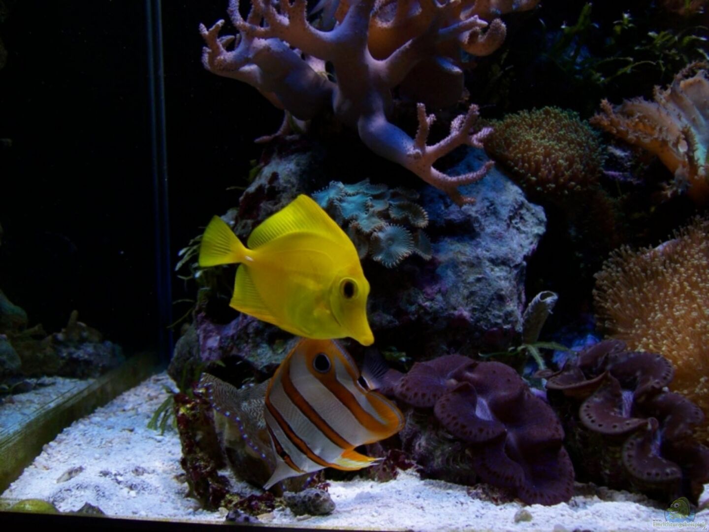 1 x Zebrasoma flavescens - Hawaii Doktor 1 x Pholidichthys leucotaenia - Weissstreifen Aalgrundel 1 x Chelmon rostratus - Orangebinden-Pinzettfisch 1 x Centropyge bispinosa - Streifen-Zwergkaiser 2 x Amphiprion percula - Clown Anemonenfisch 1 x Salarias fasciatus - Juwelen Felshüpfer 5 x Chromis viridis - grünes Schwalbenschwänzchen 1 x Seriatopora hystrix - Christusdorn-Koralle 1 x Montipora digitata 01 - Hochwachsende Montipora 1 x Lobophytum sp. 01 - Fingerlederkoralle 1 [...]