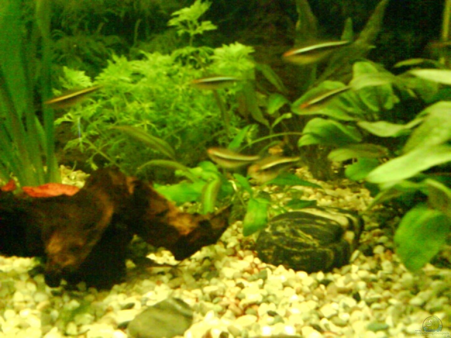 20 x schwarzer Neon 2 x blauer Antennenwels 6 x Armanogarnele 2 x Krallenfrosch ein Kackadu Buntbarschen paar...weibchen ist schwanger ;-)