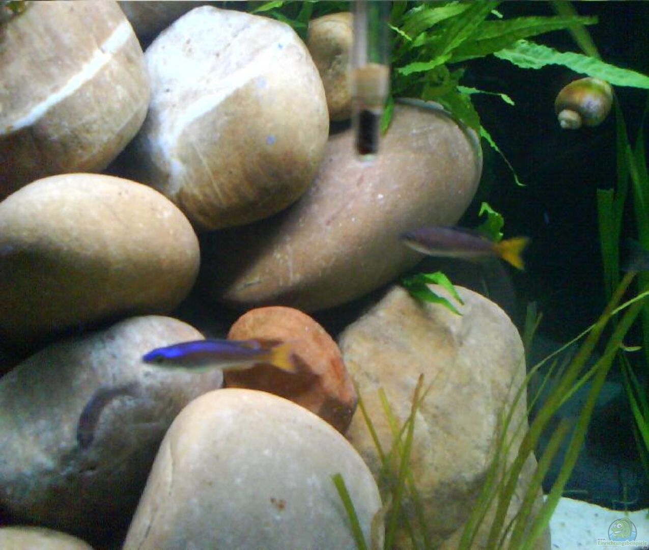 > Cyprichromis leptosoma ´Utinta´ 2, 3 > Lamprologus signatus 1, 1 > Julidochromis sp. Gombi 1 x Ampullaria scalaria (Apfelschnecke) 1 x Neritina natalensis (Zebra-Rennschnecke) 2 x Caridina japonica