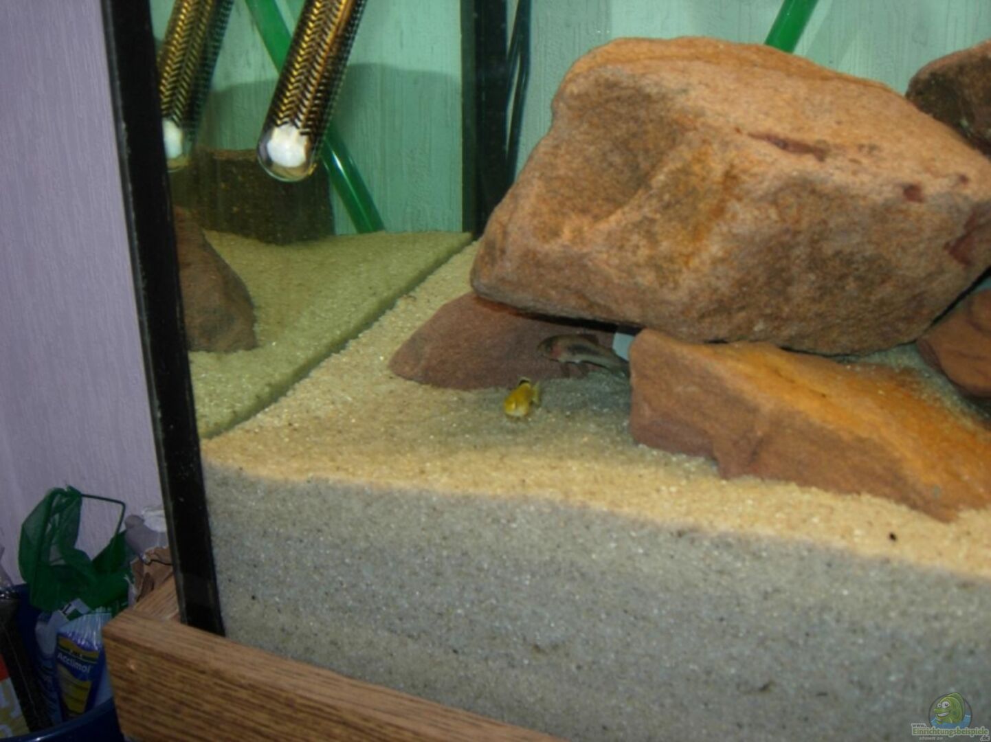 6xLabidochromis caeruleus´Yellow´/Sind noch Babys Vorübergehend: 3x Metallpanzerwels 2XBlauer Antennenwels Ich wei?? die Wasserwerte sind für diese Fische nicht geeignet sind aber auch Für eine kurze Zeit im Becken.