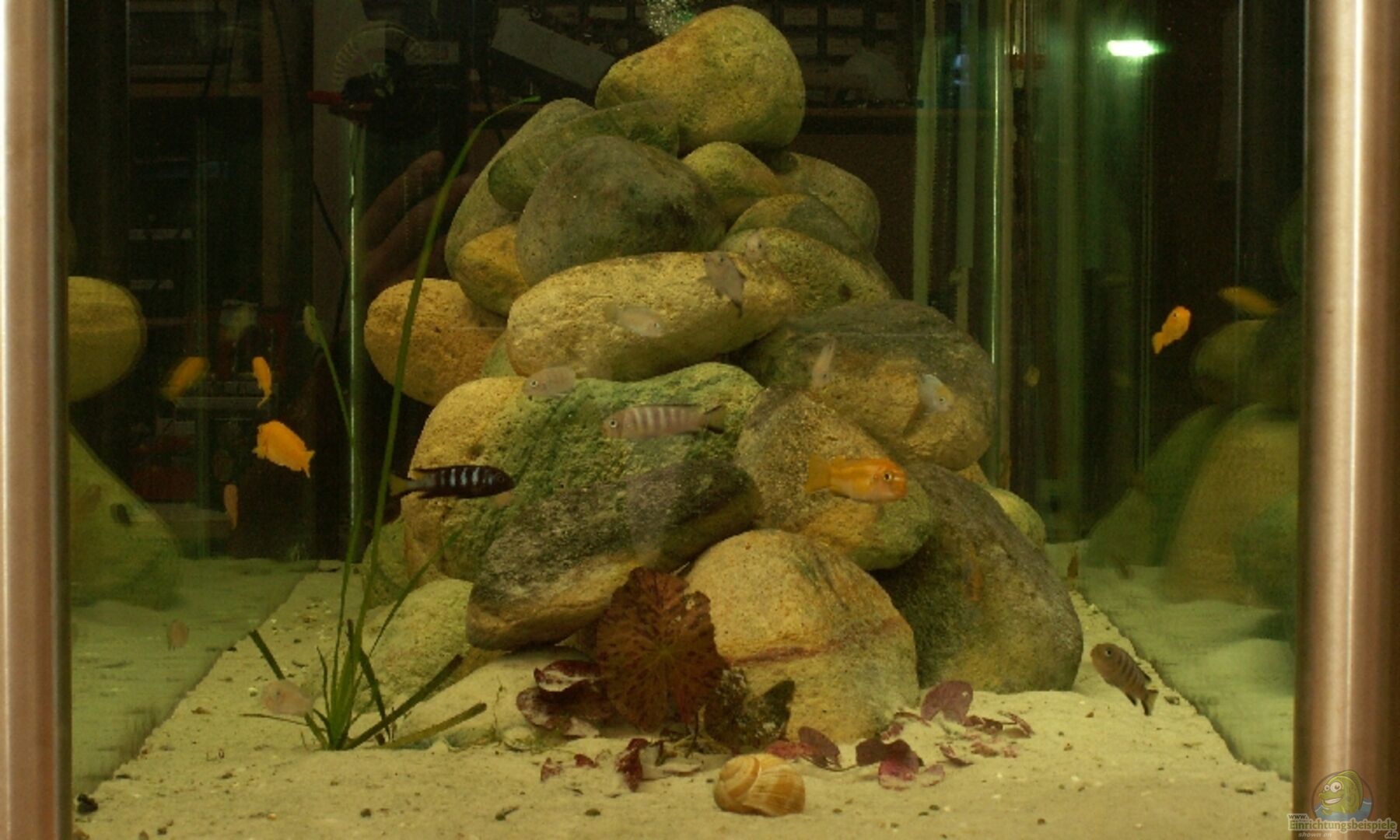 Wunschbesatz: 1/4 Cynotilapia afra Cobue 1/4 Iodotropheus sprengerae 1/4 Pseudotropheus elongatus Chewere 1/4 Melanochromis johanii Ist: 7 Cynotilapia afra Cobue 7 Iodotropheus sprengerae 7 Pseudotropheus elongatus Chewere 5 Melanochromis johanii Wegen der Geschlechterverhältnisse bin ich mir noch nicht so ganz sicher. So wie es aussieht sind deutlich mehr Männchen dabei als gewünscht.