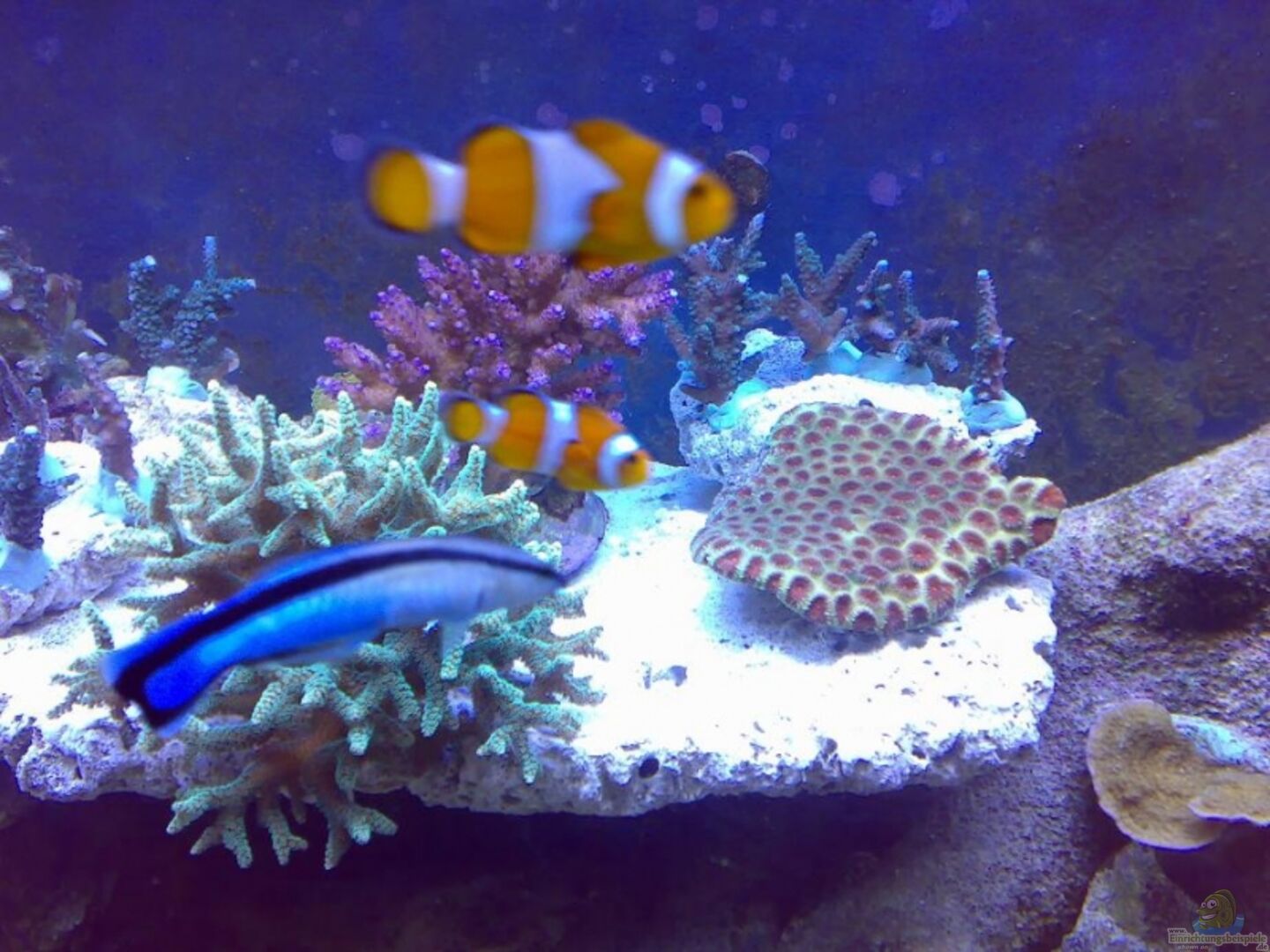 - 1 Paletten Doktorfisch (Paracanthurus hepatus) - 2 Doktorfisch Hawaii (Zebrasoma flavescens) - 1 Goldringborstenzahndoc - 2 falscher Clownfisch (Amphiprion ocellaris) - 1 Putzerlippfisch (Labroides dimidiatus) - 2 Sechsstreifenlippfisch (Pseudocheilinus hexataenia) - 1 Feuer Korallenwächter(Neocirrhites armatus) - 1 Juwelen Felshüpfer (Salarias fasciatus) - zwei Putzergarnelen SPS Steinkorallen: - Buschkoralle (Pocillopora damicornis) - Dornkoralle (Seriatopora caliendrum) - [...]