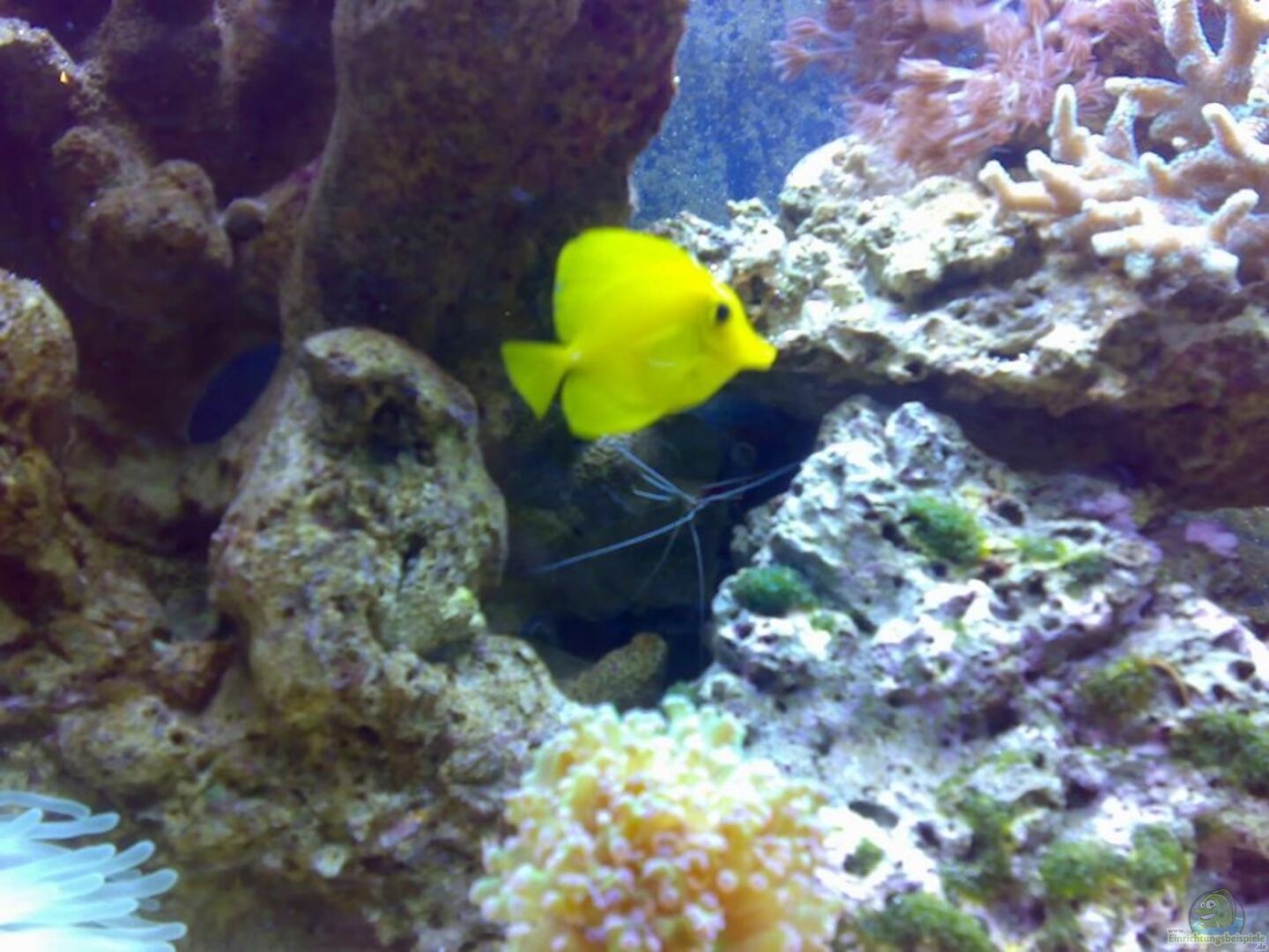 - 1 Paletten Doktorfisch (Paracanthurus hepatus) - 2 Doktorfisch Hawaii (Zebrasoma flavescens) - 1 Goldringborstenzahndoc - 2 falscher Clownfisch (Amphiprion ocellaris) - 1 Putzerlippfisch (Labroides dimidiatus) - 2 Sechsstreifenlippfisch (Pseudocheilinus hexataenia) - 1 Feuer Korallenwächter(Neocirrhites armatus) - 1 Juwelen Felshüpfer (Salarias fasciatus) - zwei Putzergarnelen SPS Steinkorallen: - Buschkoralle (Pocillopora damicornis) - Dornkoralle (Seriatopora caliendrum) - [...]