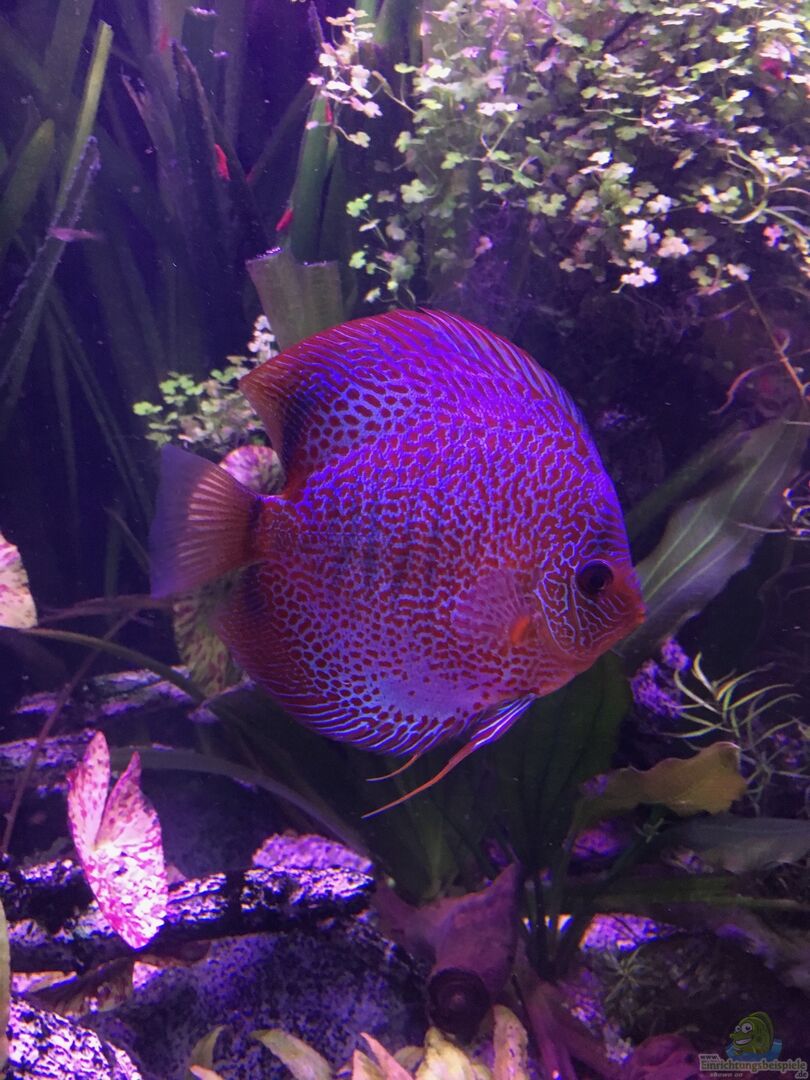 Die Bewohner des Aquariums : 13x Stendker Diskus, verschiedene Farbschläge, (Symphysodon aequifasciatus) 20x Roter Neon, (Paracheirodon axelrodi) 20x Guppies, (Poecilia reticulata) 5x Corydoras sterbai 8x Corydoras arcuatus 1x Corydoras julii 2x Villavicencio Zwergbuntbarsch, (Apistogramma macmasteri) 2x Kakadu Zwergbunzbarsch, (Apistogramma cacatuoides) 2x Schachbrett Zwergbuntbarsch, (Dicrossus maculatus) 1x Ringelsocken Harnischwels L47, (Panaqolus albivermis) 4x Blauer [...]