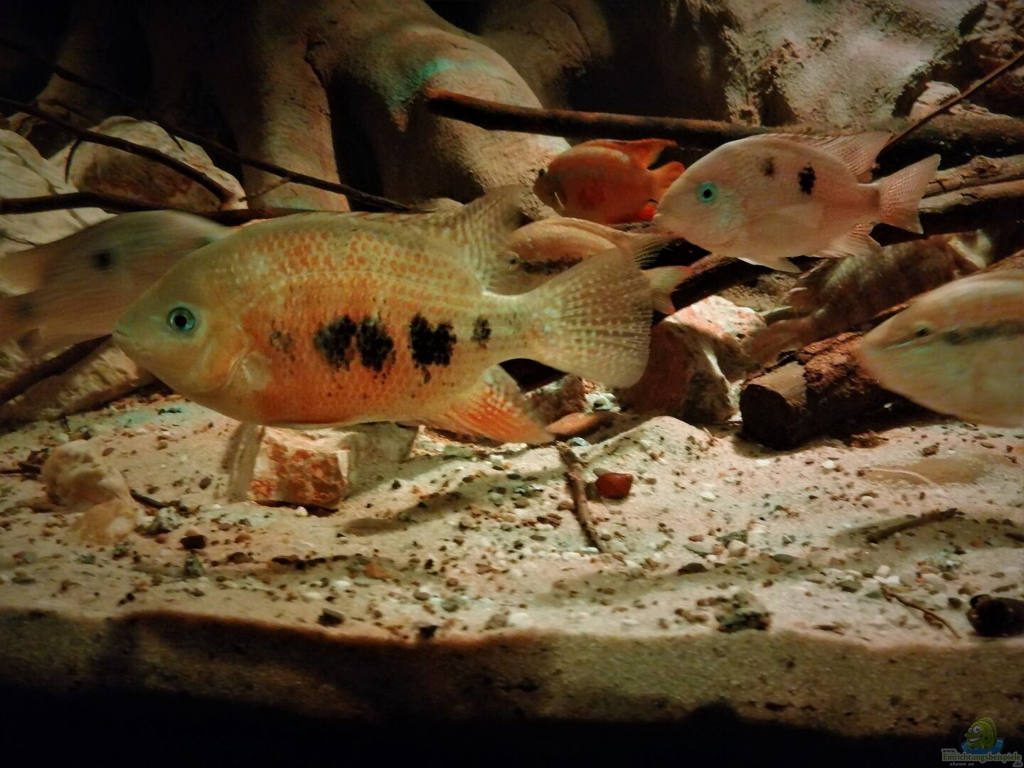 4 Maskaheros regani "Almoloya" 1 Cincelichthys bocourti 1 Maskaheros argenteus ( Paraneetroplus) 5 Trichromis Salvini ( Salvins Buntbarsch ) 2 Rocio octofasciata ( Achtbindenbuntbarsch ) 3 L 124 4 Teufelsdornschnecken 3 Pianoschnecken 2 Puntnapfschnecken