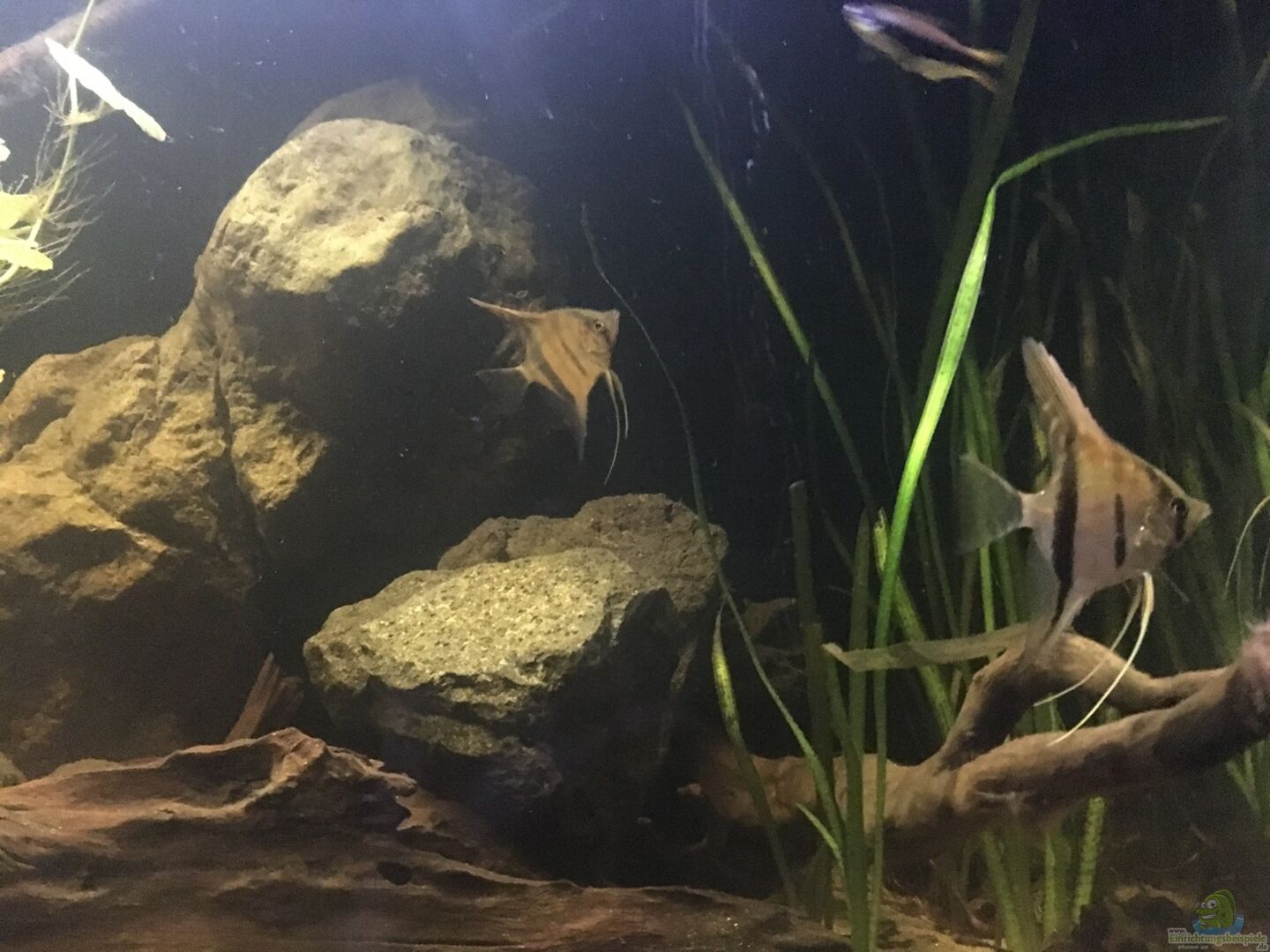 2Pterophyllum cf. scalare "Lago Manacapuru 1| 1 (Spannweite der Tiere per 20.03. ca. 10cm; per 25cm)April 2020 30cm 4 Pterophyllum scalare ( Juvenile eingezogen am 13.5.2019), Spannweite per April 2020 20cm 15 Moenkhausia sanctaefilomenae 1 Farlowella acus L 103 Peckoltia pulcher 15 Corydoras leucomelas 4 Bunocephalus coracoideus Anentome helena