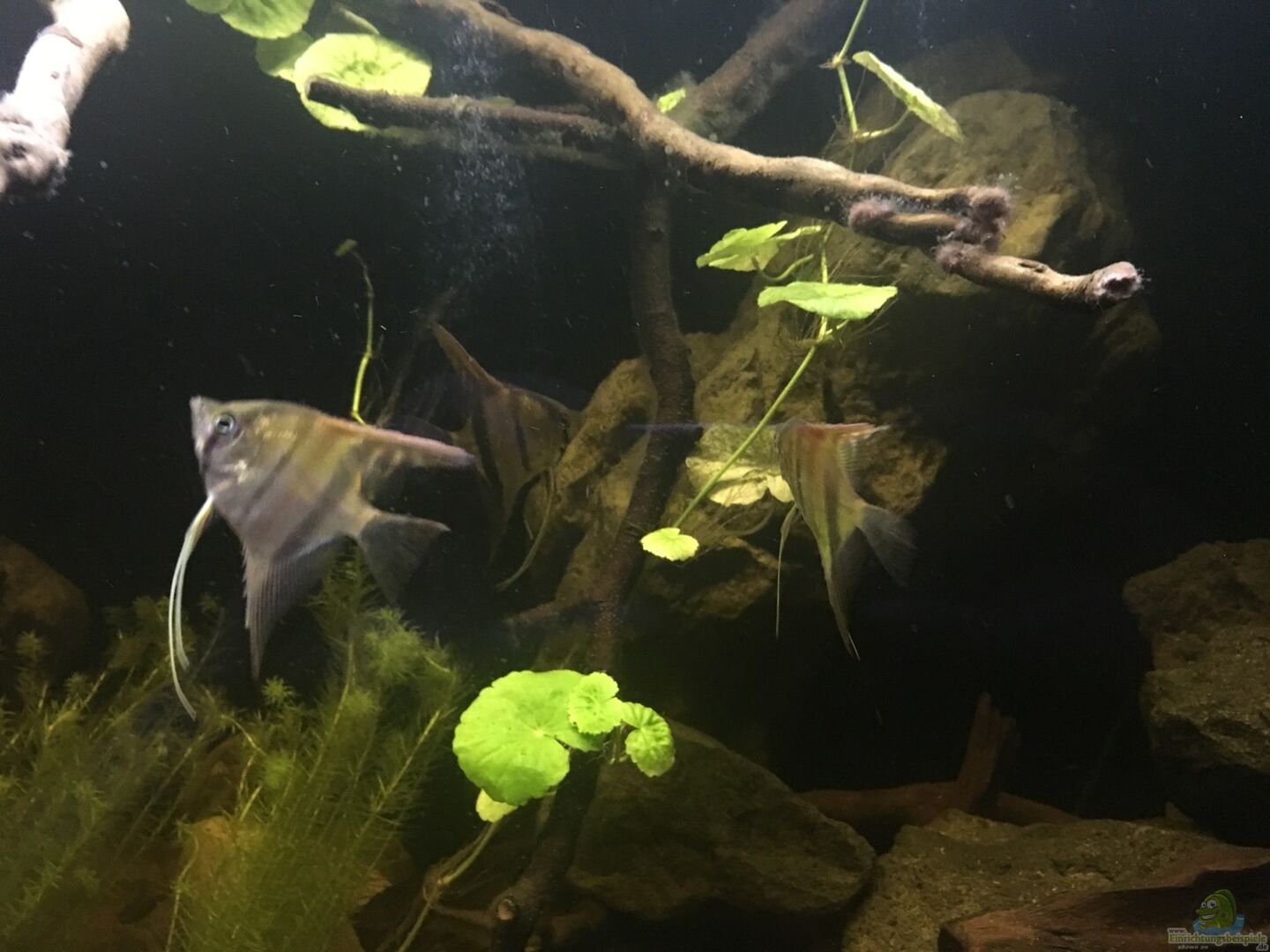 2Pterophyllum cf. scalare "Lago Manacapuru 1| 1 (Spannweite der Tiere per 20.03. ca. 10cm; per 25cm)April 2020 30cm 4 Pterophyllum scalare ( Juvenile eingezogen am 13.5.2019), Spannweite per April 2020 20cm 15 Moenkhausia sanctaefilomenae 1 Farlowella acus L 103 Peckoltia pulcher 15 Corydoras leucomelas 4 Bunocephalus coracoideus Anentome helena