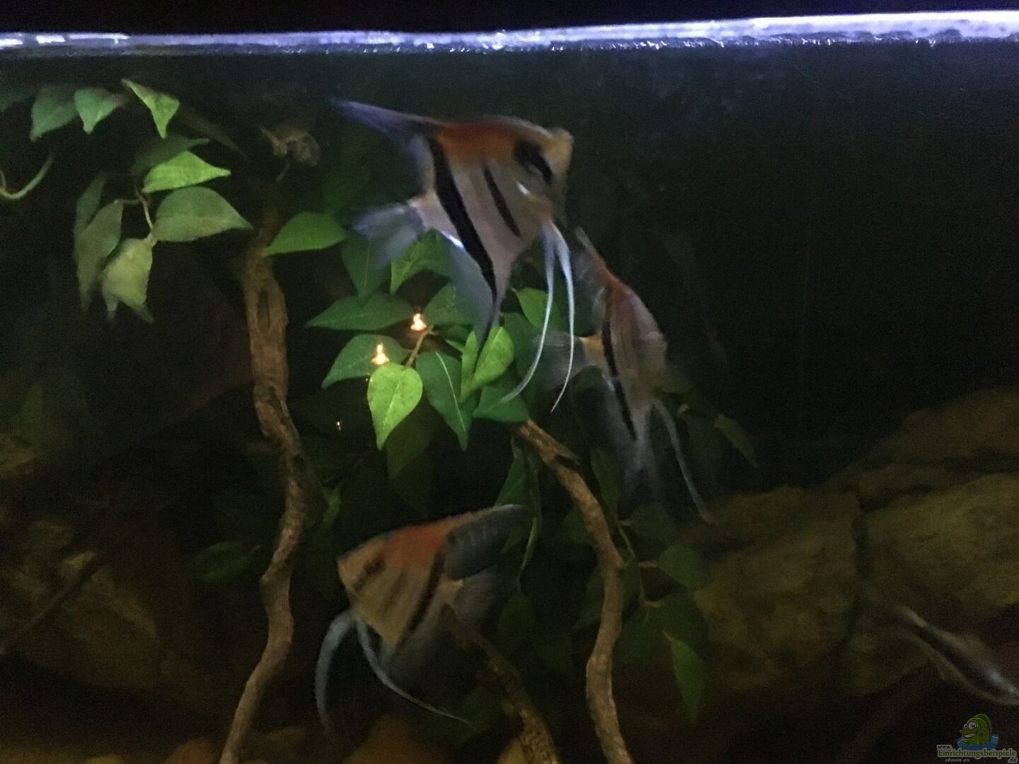 2Pterophyllum cf. scalare "Lago Manacapuru 1| 1 (Spannweite der Tiere per 20.03. ca. 10cm; per 25cm)April 2020 30cm 4 Pterophyllum scalare ( Juvenile eingezogen am 13.5.2019), Spannweite per April 2020 20cm 15 Moenkhausia sanctaefilomenae 1 Farlowella acus L 103 Peckoltia pulcher 15 Corydoras leucomelas 4 Bunocephalus coracoideus Anentome helena