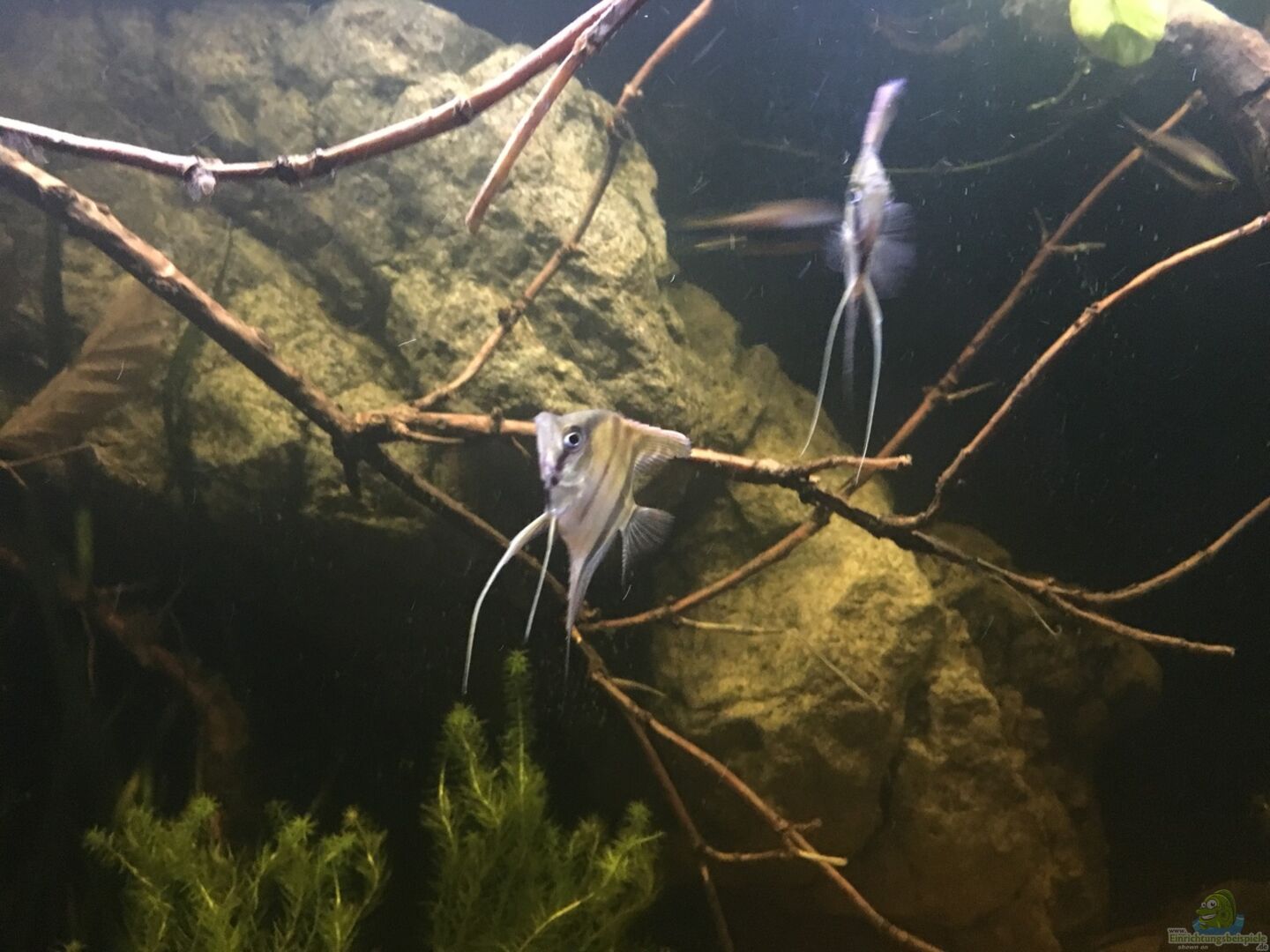 2Pterophyllum cf. scalare "Lago Manacapuru 1| 1 (Spannweite der Tiere per 20.03. ca. 10cm; per 25cm)April 2020 30cm 4 Pterophyllum scalare ( Juvenile eingezogen am 13.5.2019), Spannweite per April 2020 20cm 15 Moenkhausia sanctaefilomenae 1 Farlowella acus L 103 Peckoltia pulcher 15 Corydoras leucomelas 4 Bunocephalus coracoideus Anentome helena