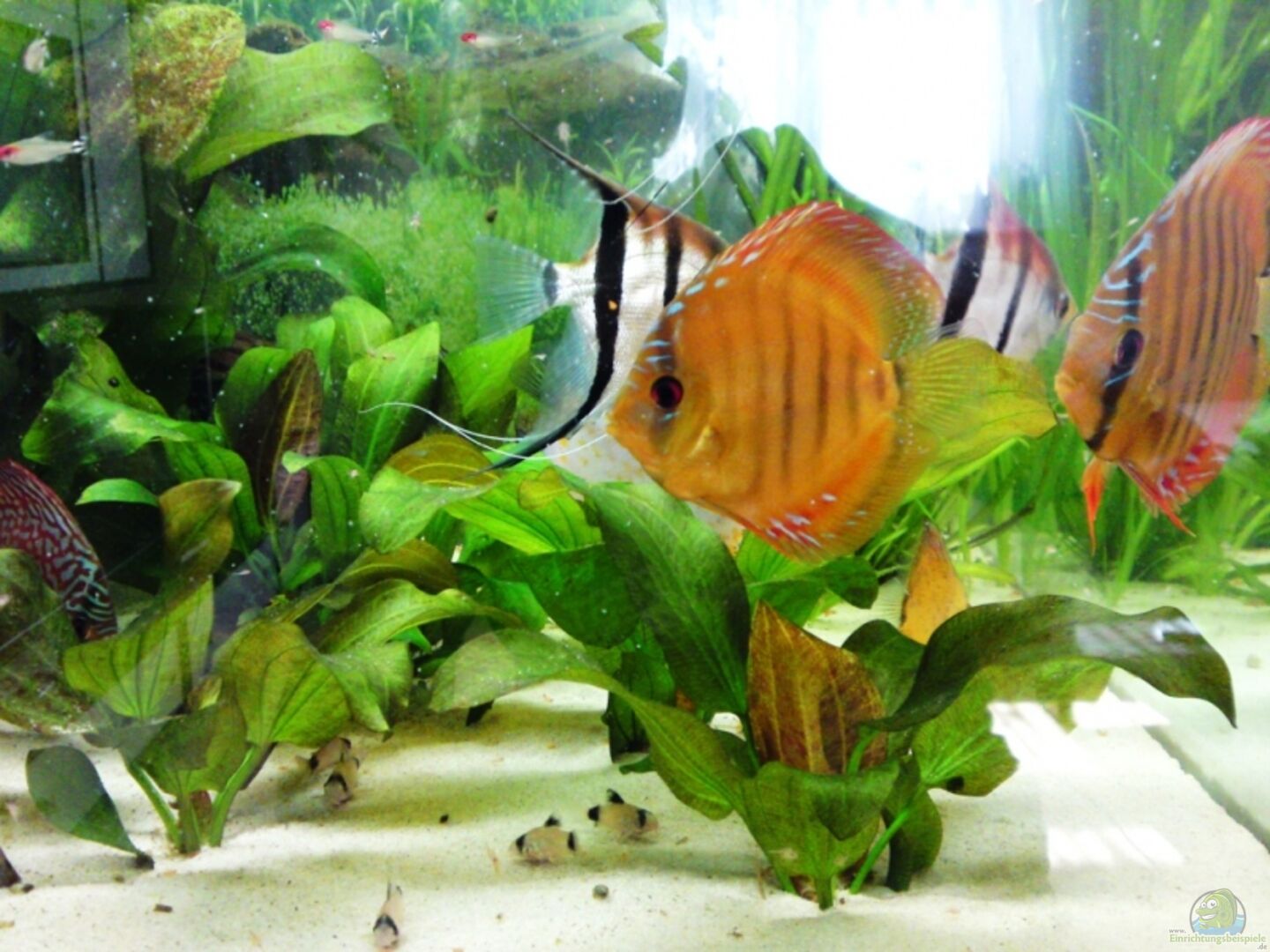 2 Santarem (junior) 2 Pigeon Blood (adult) 2 Rot-Türkis (adult) 17.08.09 1Rot- Türkis gegen Flächig Rot getauscht 1 Blau Türkis (adult) Leider nur noch 1Rotrückenskalar (wird aufgestockt auf 3) 15.08.09 auf 4 Rotrückenskalare aufgestockt darunter auch ein Pärchen 20 Rotkopfsalmler 2 Neons es waren am Anfang 40 Sück 2 Apfelschnecken 2 L66 1 L201 15 Pandawelse