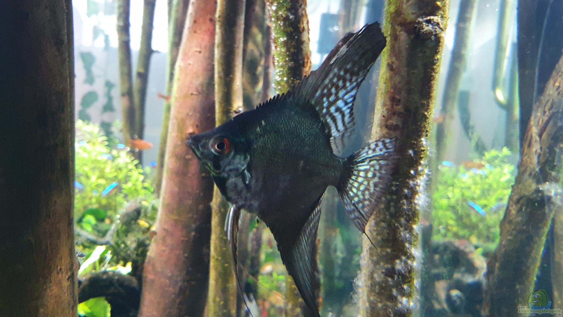 - 24 * Roter Neon - 9 * Brillantsalmler - 10 * Rotkopfsalmler - 10 * Roter Phantomsalmler - 10 * Kupfersalmler - 5* Apistogramma inka - 4* Pterophyllum scalare (davon ein sogenannter "Pinoy Skalar") - verschiedenste Schneckenarten und Garnelen als Algen- und Restevertilger