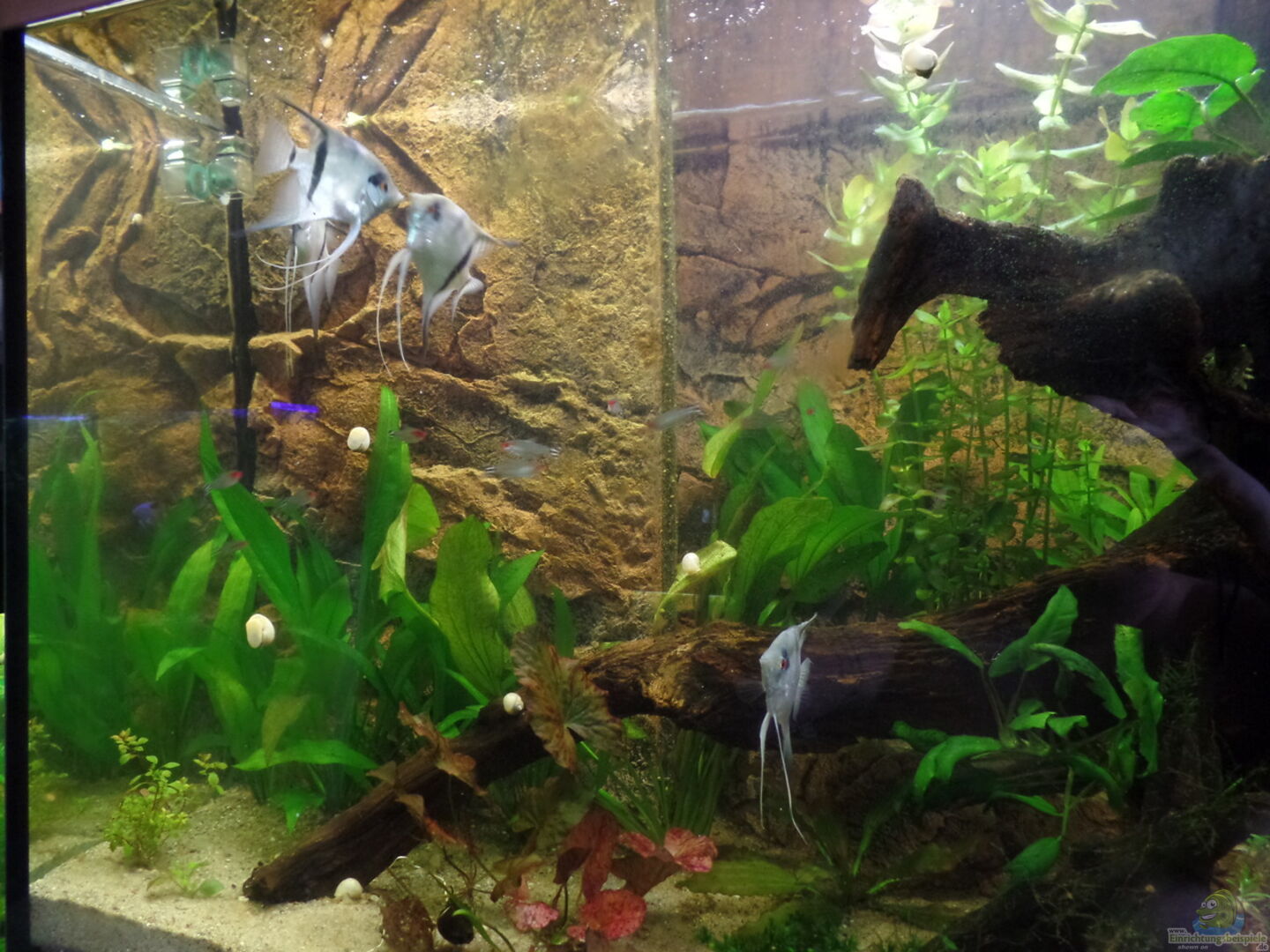 37 Rotkopfsalmler Hemigrammus bleheri 1/1 Purpurprachtbarsch Pelvicachromis pulcher 5 Blauer Zwergskalar Pterophyllum cf scalare und Jochen Viele gro??e dicke gelbe Schnecken, sind aber noch klein Turmdeckelschnecken Auf Grund dessen, da?? wir ja einen Gammelhaufen aufgekauft hatten, siehe Blog, und die 7 Rotkopfsalmler eingezogen sind, haben wir die 6 Zwergziersalmler Nannostomus Marginatus in ein 100 Liter Aquarium umgesetzt. Dort haben sie Ruhe. Die [...]