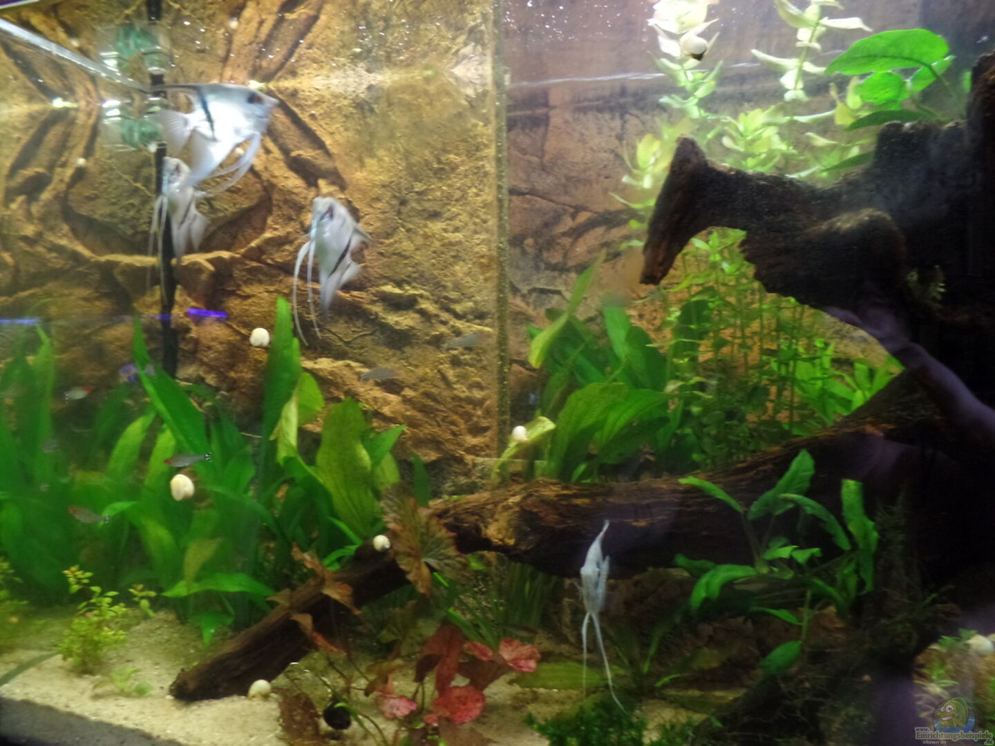 37 Rotkopfsalmler Hemigrammus bleheri 1/1 Purpurprachtbarsch Pelvicachromis pulcher 5 Blauer Zwergskalar Pterophyllum cf scalare und Jochen Viele gro??e dicke gelbe Schnecken, sind aber noch klein Turmdeckelschnecken Auf Grund dessen, da?? wir ja einen Gammelhaufen aufgekauft hatten, siehe Blog, und die 7 Rotkopfsalmler eingezogen sind, haben wir die 6 Zwergziersalmler Nannostomus Marginatus in ein 100 Liter Aquarium umgesetzt. Dort haben sie Ruhe. Die [...]