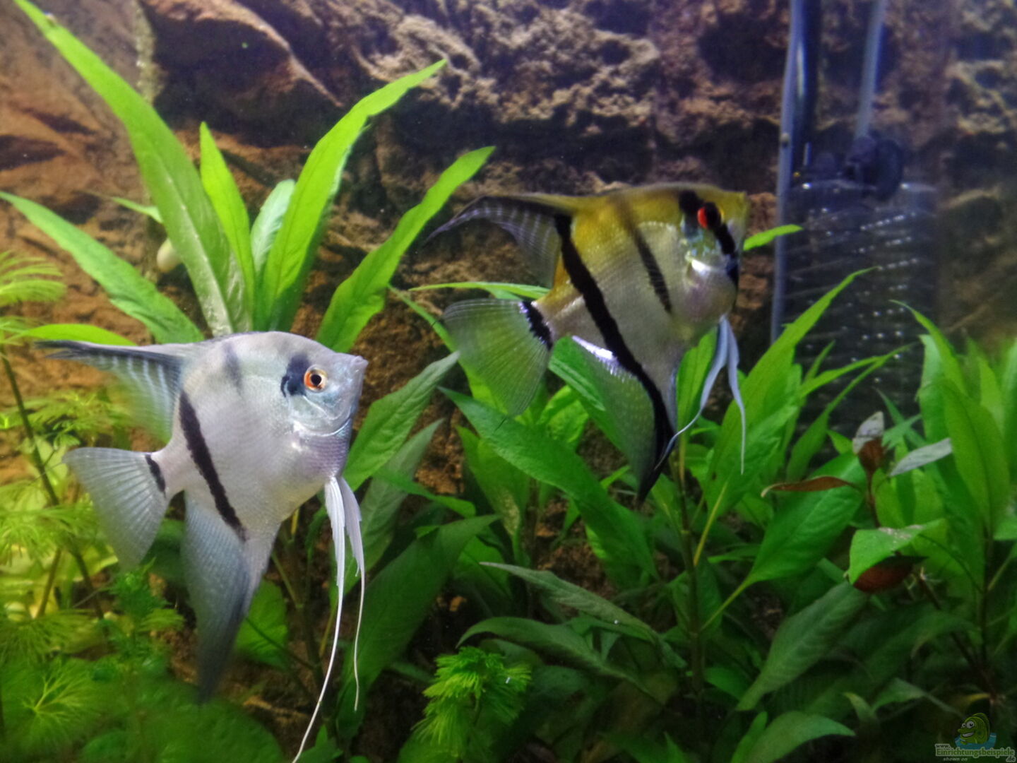37 Rotkopfsalmler Hemigrammus bleheri 1/1 Purpurprachtbarsch Pelvicachromis pulcher 5 Blauer Zwergskalar Pterophyllum cf scalare und Jochen Viele gro??e dicke gelbe Schnecken, sind aber noch klein Turmdeckelschnecken Auf Grund dessen, da?? wir ja einen Gammelhaufen aufgekauft hatten, siehe Blog, und die 7 Rotkopfsalmler eingezogen sind, haben wir die 6 Zwergziersalmler Nannostomus Marginatus in ein 100 Liter Aquarium umgesetzt. Dort haben sie Ruhe. Die [...]