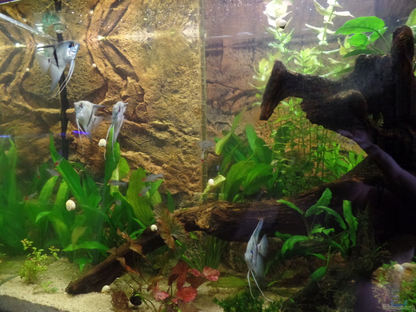 37 Rotkopfsalmler Hemigrammus bleheri 1/1 Purpurprachtbarsch Pelvicachromis pulcher 5 Blauer Zwergskalar Pterophyllum cf scalare und Jochen Viele gro??e dicke gelbe Schnecken, sind aber noch klein Turmdeckelschnecken Auf Grund dessen, da?? wir ja einen Gammelhaufen aufgekauft hatten, siehe Blog, und die 7 Rotkopfsalmler eingezogen sind, haben wir die 6 Zwergziersalmler Nannostomus Marginatus in ein 100 Liter Aquarium umgesetzt. Dort haben sie Ruhe. Die [...]