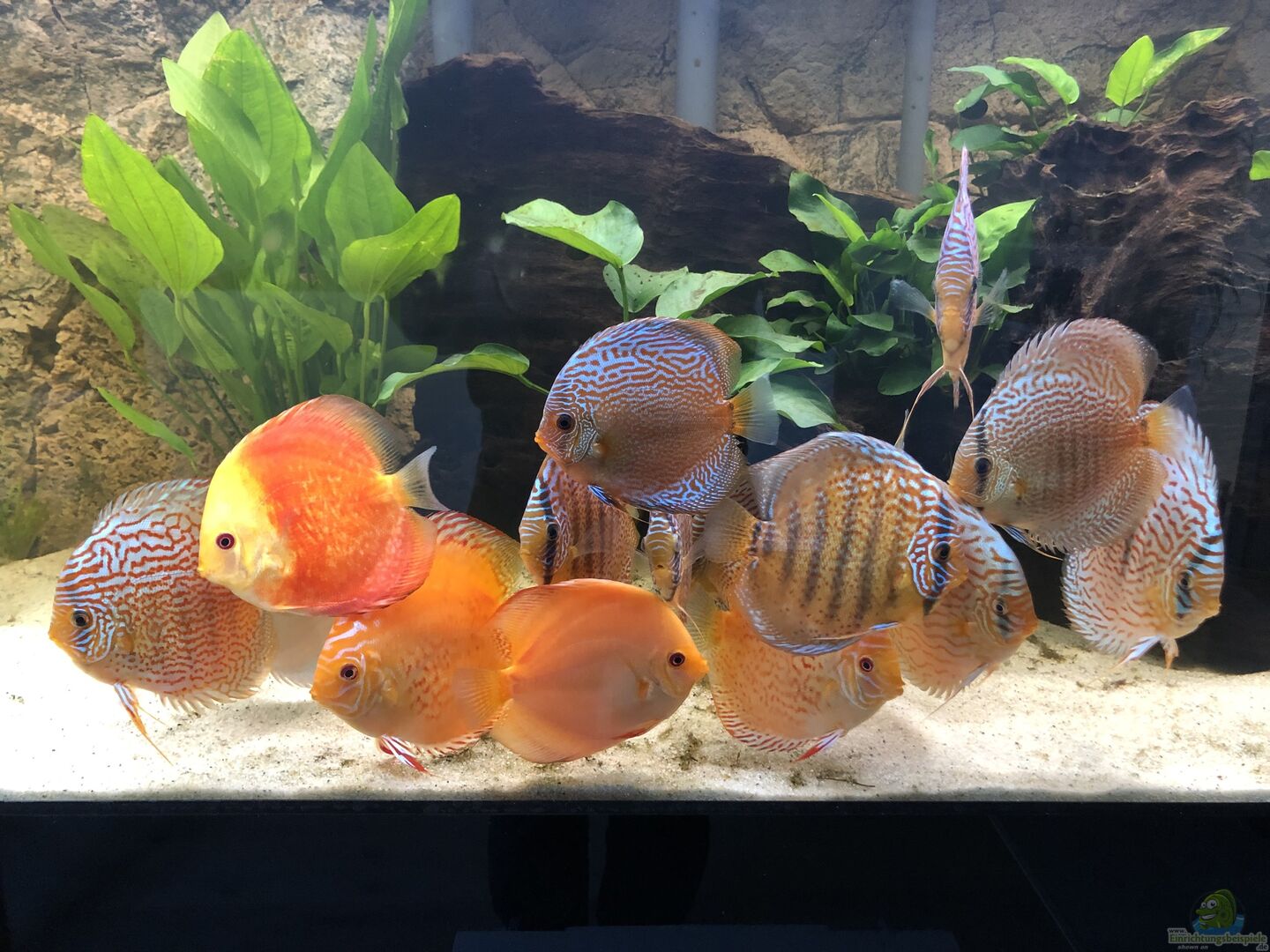 17 Symphysodon (Diskus), bunt gemischt von der Diskuszucht Weissflog 20 Corydoras sterbai (Schönflossenpanzerwels) 3 Loricaria Simillima (Sandwels) 3 Sturisoma festivum (Langflossen-Harnischwels) 6 Crossocheilus oblongus (Siamensis) 25 Neritina pulligera (Anthrazit Napfschnecken)