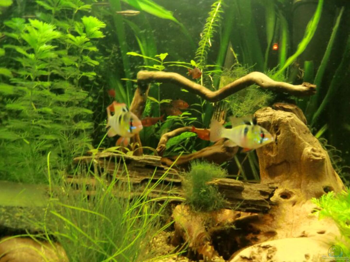 Aktueller Besatz: 11 Blutsalmler 10 Längsbandziersalmler 1 L144 1 Lila Apfelschnecke 6 Metallpanzerwelse 2 Schmetterlingsbuntbarsche 5 Amanogarnelen 1 Brauner Antennenwels